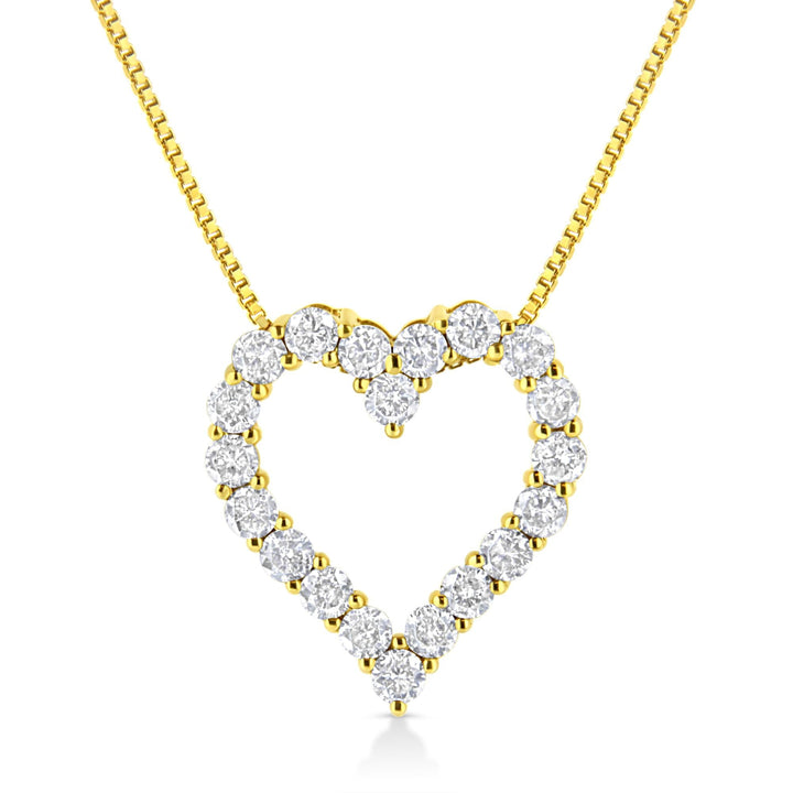 14K Yellow Gold Plated .925 Sterling Silver 2.0 Cttw Round Cut Diamond Classic Open Heart 18' Pendant Necklace (K-L Color, I2-I3 Clarity)