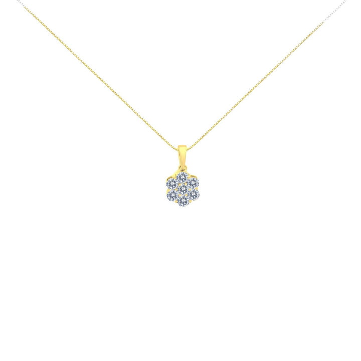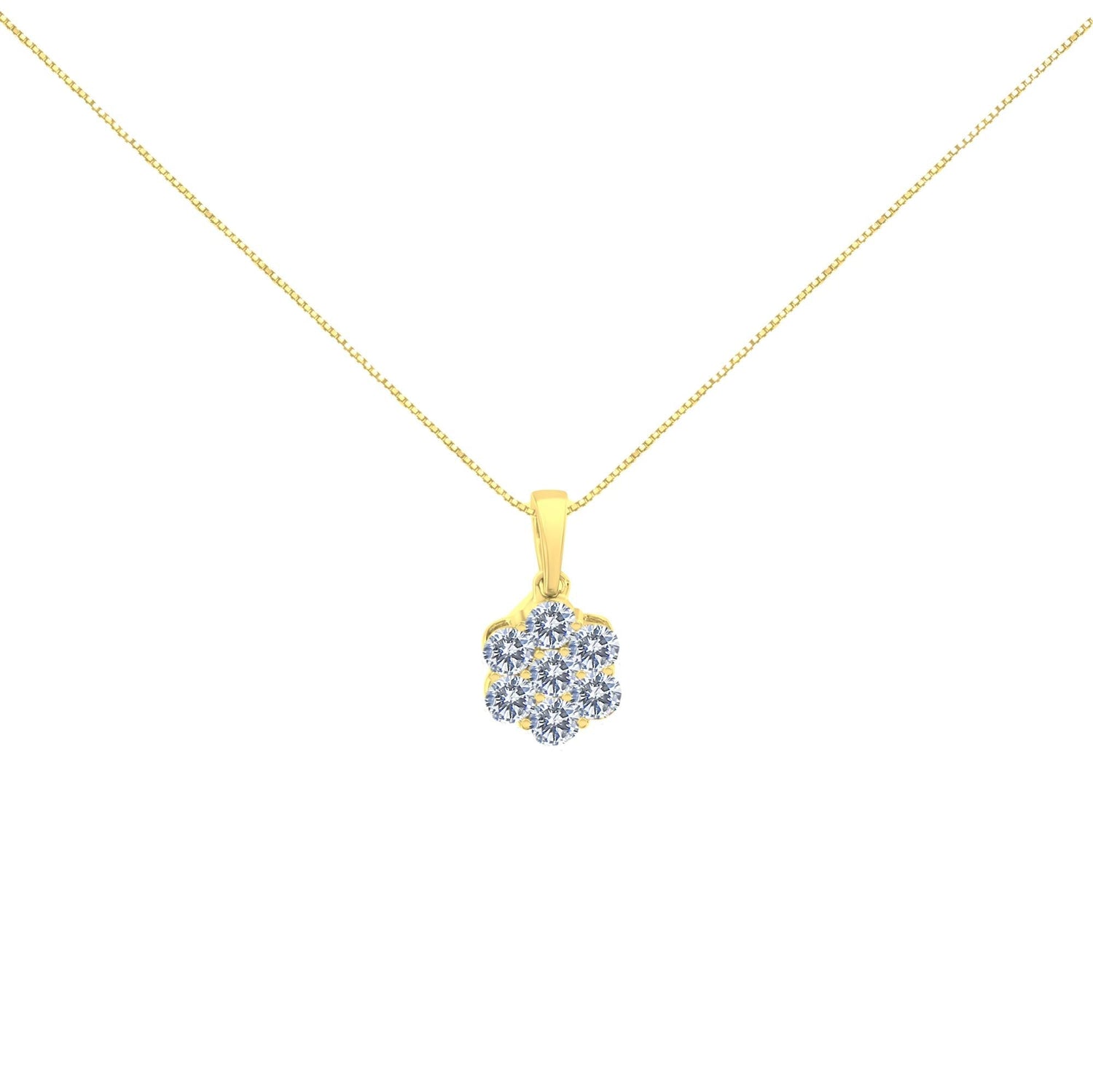 This 14K Yellow Gold 1.00 Cttw Brilliant Round-Cut Diamond 7 Stone Floral Cluster 18' Pendant Necklace by Haus of Brilliance is a timeless and elegant design. Featuring a floral motif with 7 round-cut diamonds in a prong setting, this necklace will sparkle and shine on any occasion. The 18-inch box chain ensures it rests perfectly around your neck.