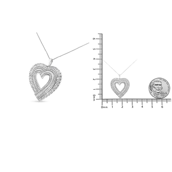 .925 Sterling Silver 1 1/4 Cttw Round and Baguette-Cut Diamond Composite Heart 18' Pendant Necklace (I-J Color, I1-I2 Clarity)