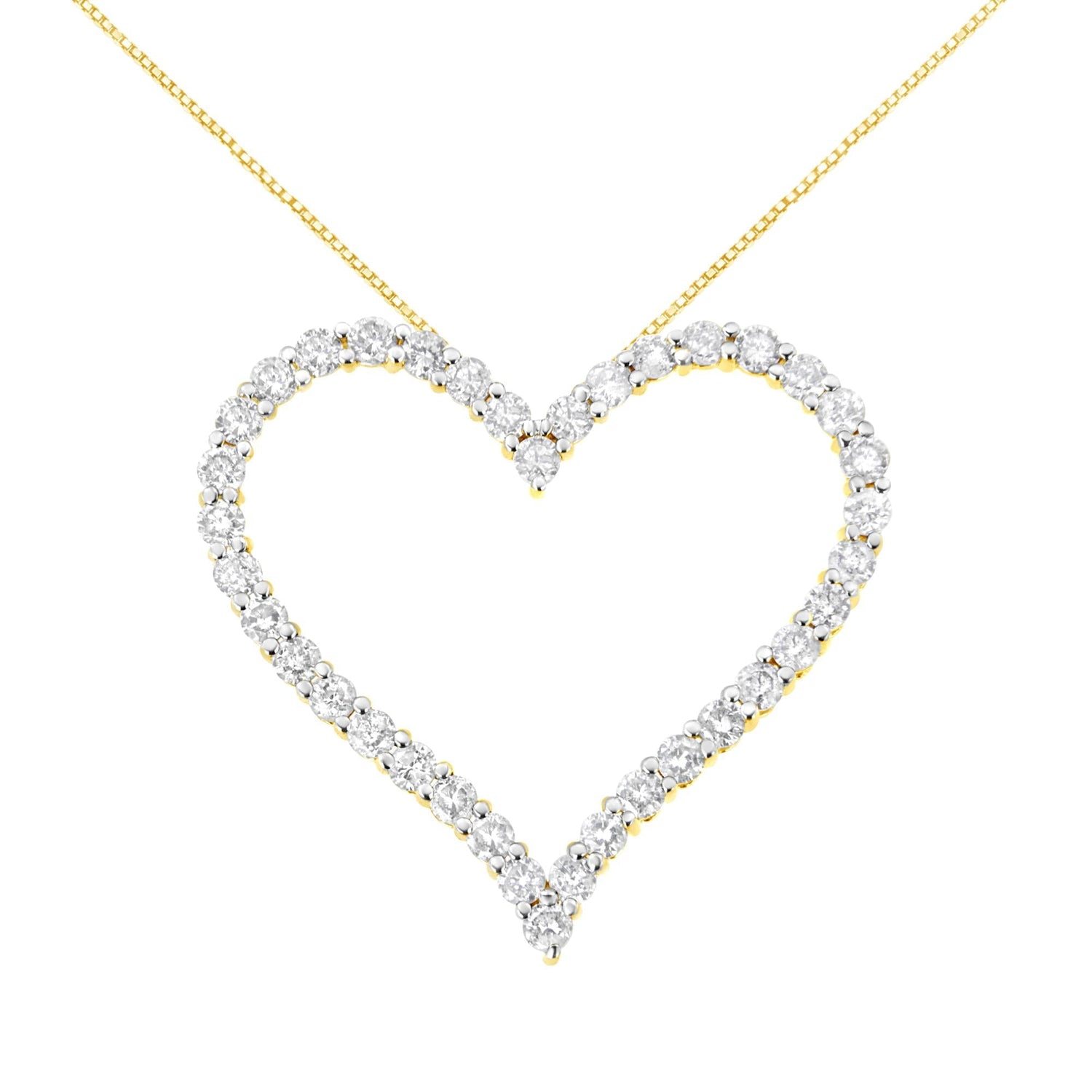 This Diamond Open Heart Pendant Necklace by Haus of Brilliance blends the timeless symbol of love with radiant brilliance. Set in warm 10K yellow gold-plated sterling silver, the open heart silhouette is adorned with 38 round-cut diamonds, each prong-set to maximize sparkle. Paired with a classic 18-inch box chain, this piece evokes romance and elegance, making it an ideal gift or personal keepsake.