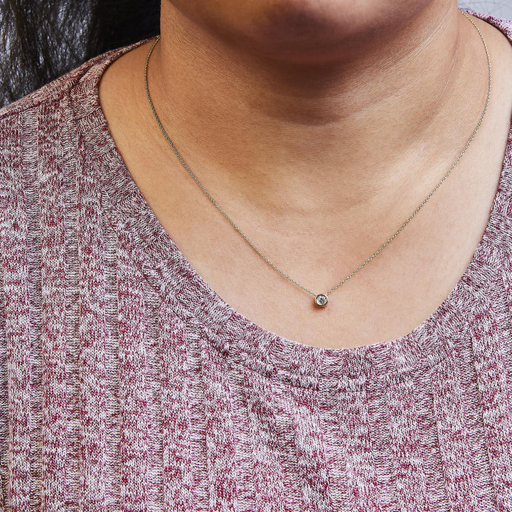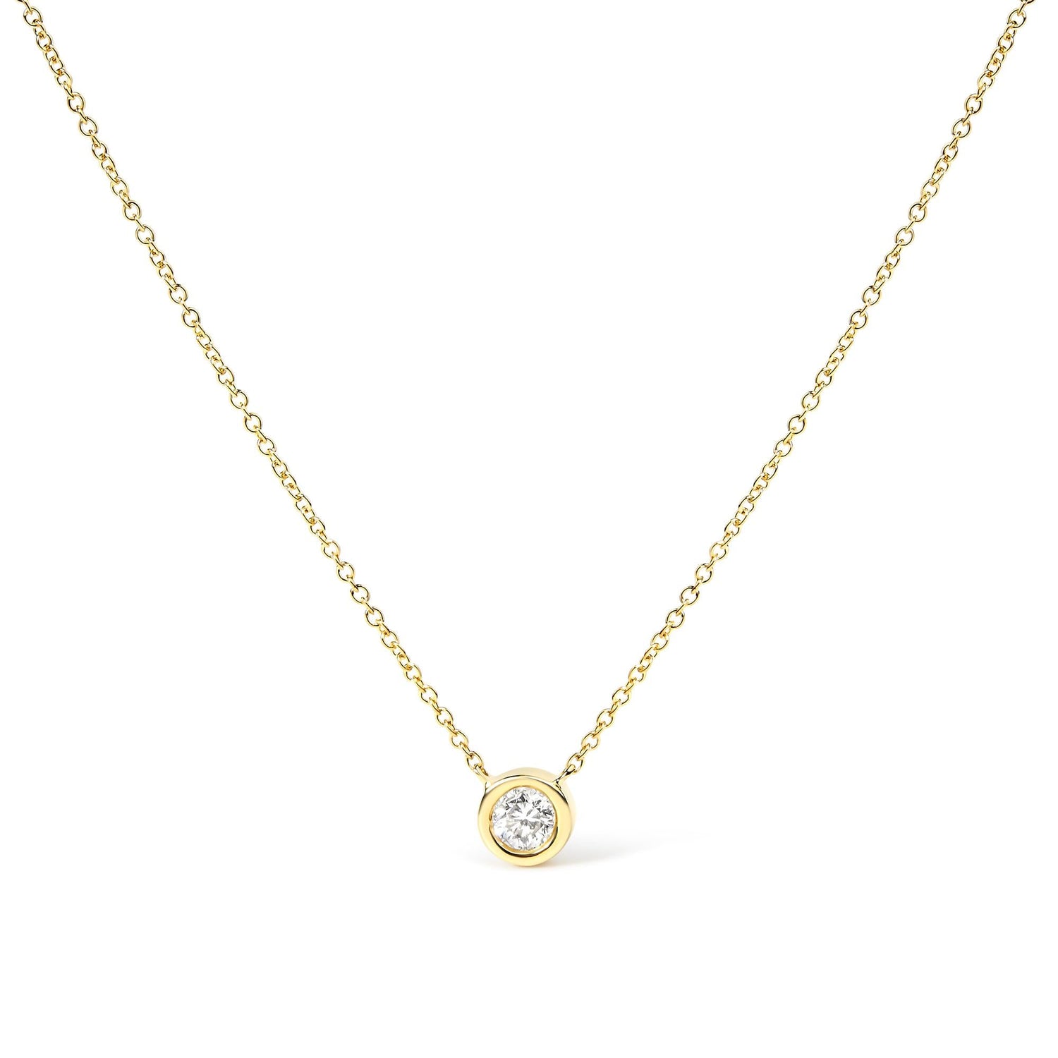 This 10K Yellow Gold 1/2 Carat Round Brilliant-Cut Diamond Modern Bezel-Set Solitaire 16'-18' Pendant Necklace by Haus of Brilliance is a timeless piece. With a 1/2 Cttw diamond set in a sleek 10K yellow gold bezel, it will complement any occasion with its understated brilliance. Adjustable from 16' to 18', this necklace offers versatility and style.