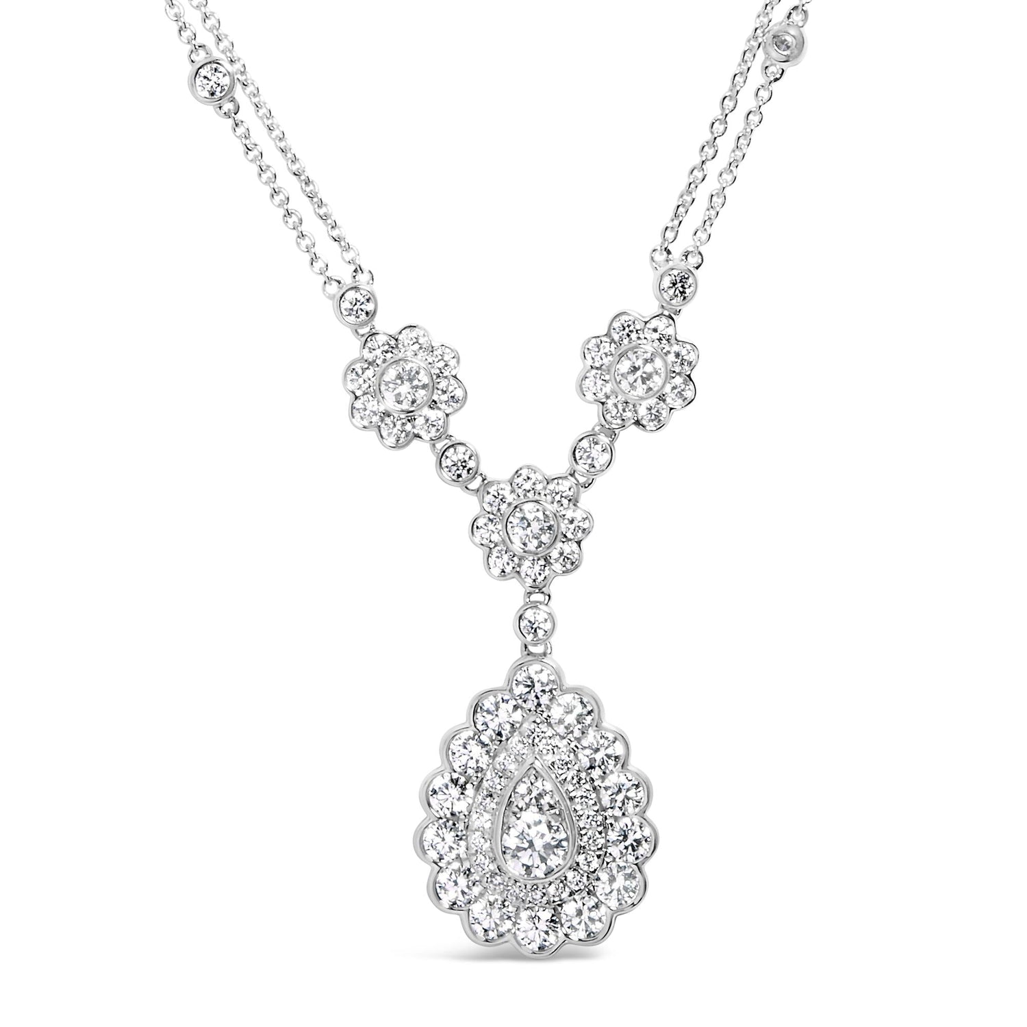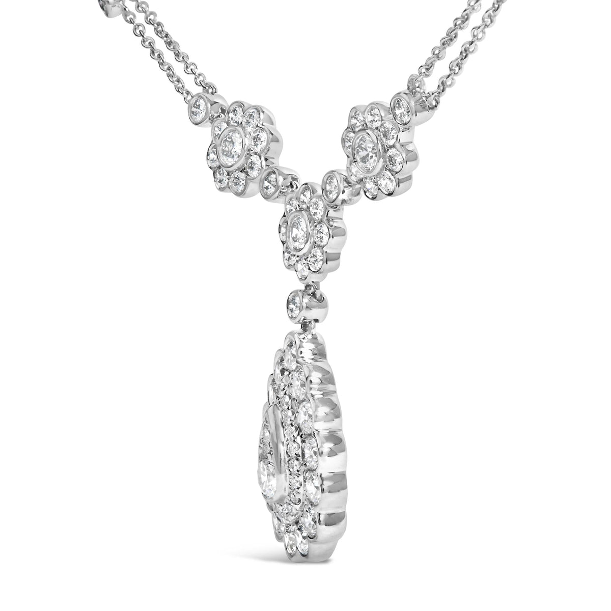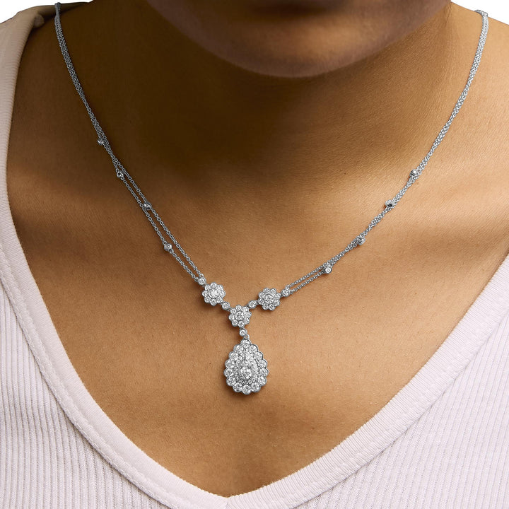 14K White Gold 2 1/2 Cttw Diamond Oval Cluster Y Drop 18' Inch Necklace (H-I Color, VS2-SI1 Clarity)