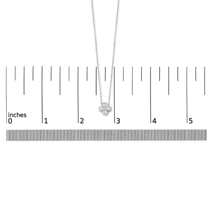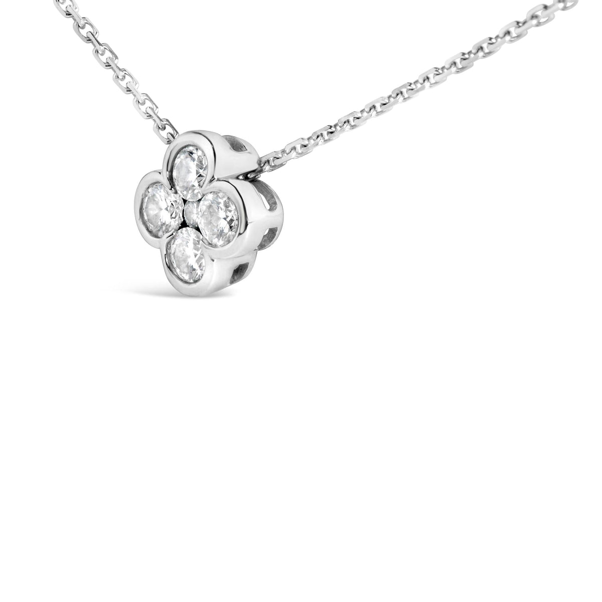14K White Gold 1/2 Cttw Diamond Bezel 4 Point Floral Bloom 18' Inch Pendant Necklace (H-I Color, VS2-SI1 Clarity)