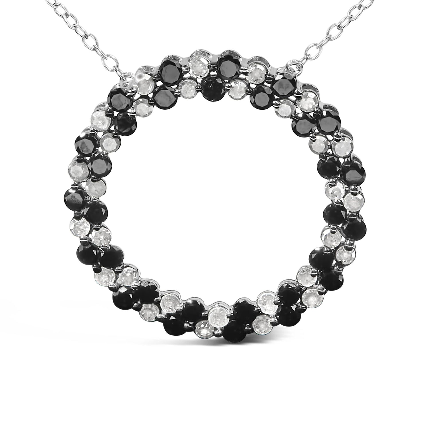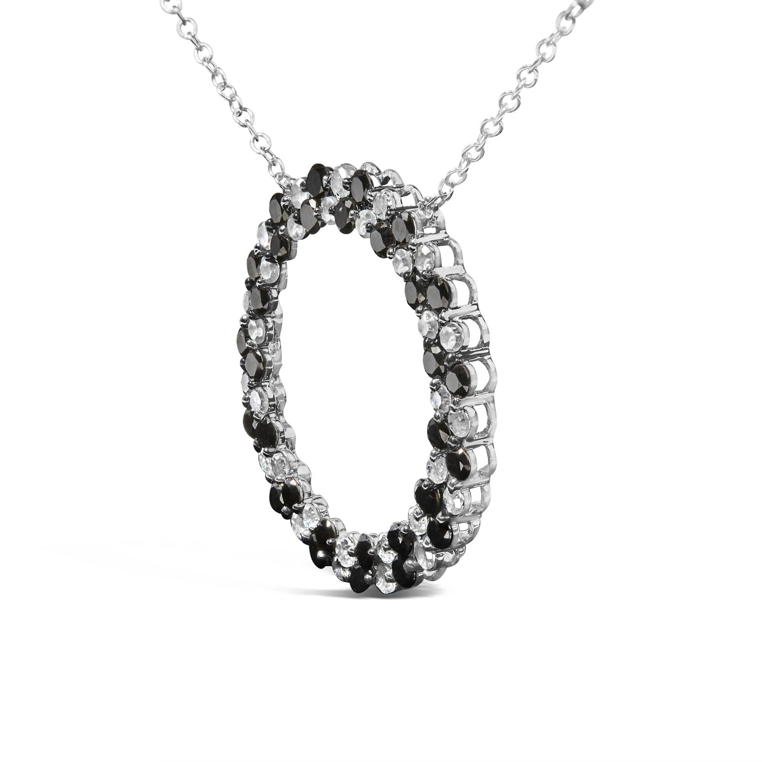 .925 Sterling Silver 1 3/5 Cttw Alternating Treated Black and White Diamond Double Row Open Circle Pendant Necklace (H-I Color, I3 Clarity) - 18'