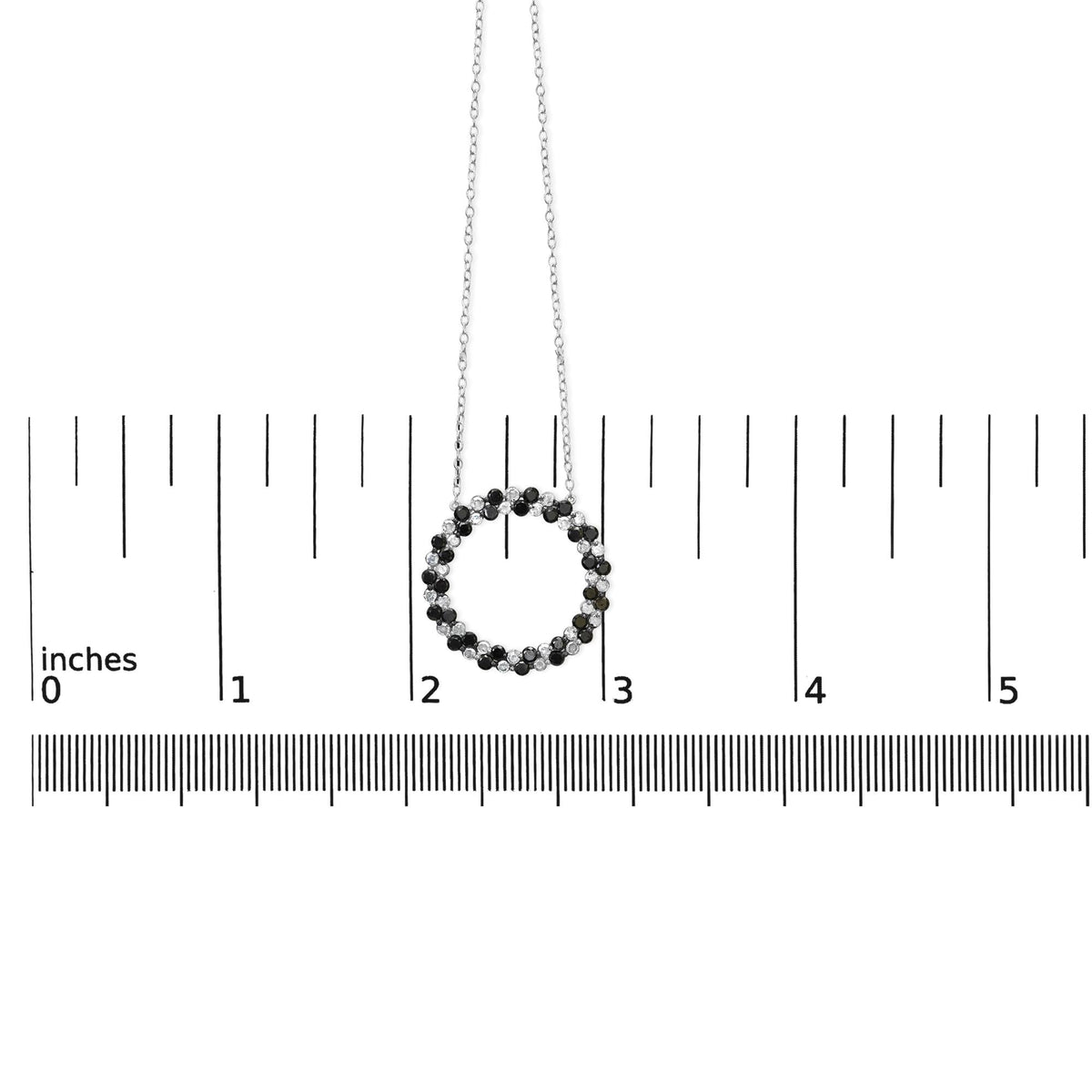 This Double Row Open Circle Pendant Necklace by Haus of Brilliance is a study in contrasts. Set in rhodium-plated sterling silver, treated black diamonds and natural white diamonds alternate in a symmetrical circular design. The open silhouette symbolizes unity and continuity, while the striking color contrast makes this 1 3/5 cttw pendant a bold and meaningful accessory.