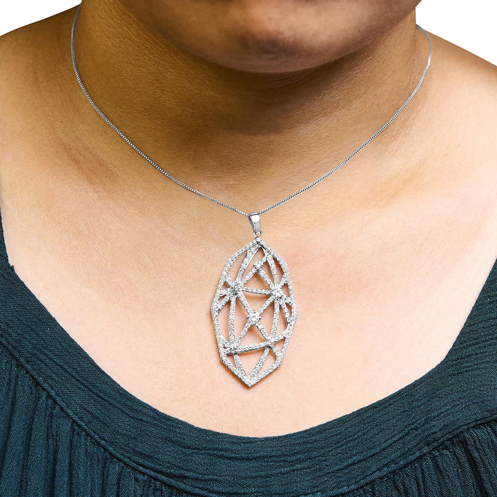 18K White Gold 2 1/4 Cttw Diamond Geometric Open Work Pendant Necklace (F-G Color, VS1-VS2 Clarity) - 18'
