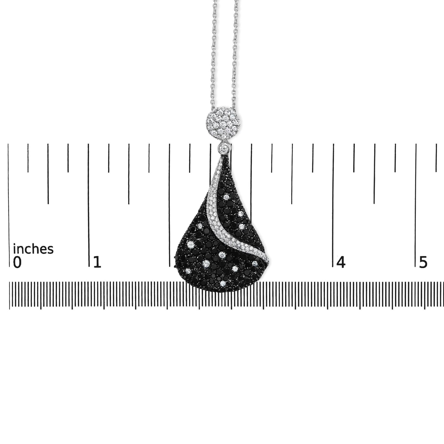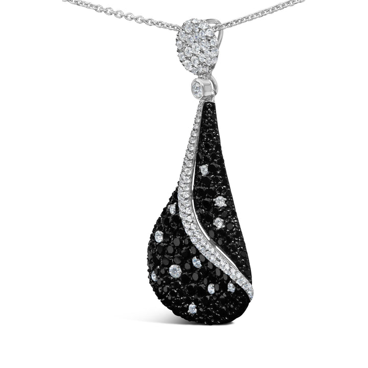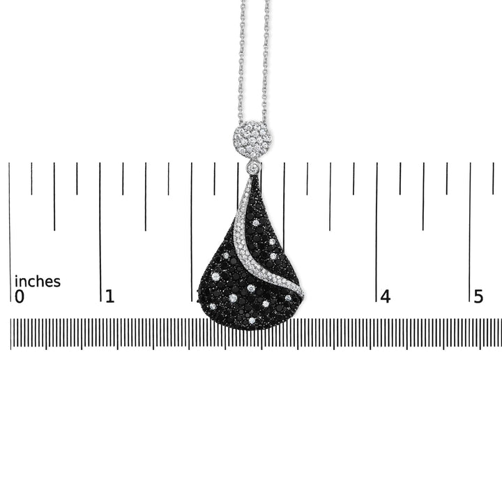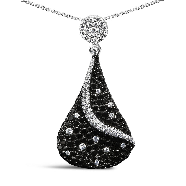 18K White Gold 6 1/3 Cttw Pave Set Black and White Diamond Teardrop Pendant Necklace (F-G Color, VS1-VS2 Clarity)
