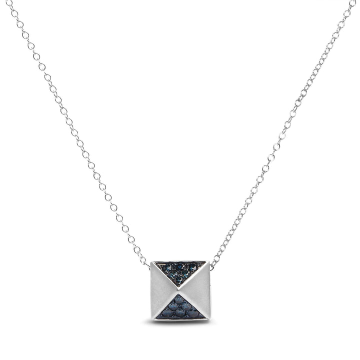 14K White Gold 1/4 Cttw Treated Blue Diamond Matte Finished Pyramid Pendant Necklace (Blue Color, SI1-SI2 Clarity) - 18' Inches