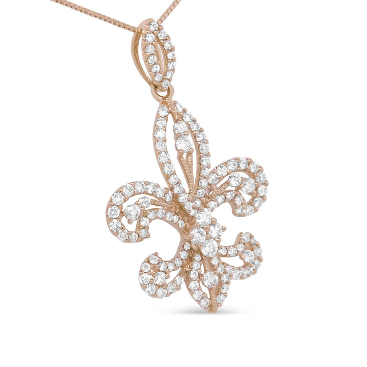 14K Yellow Gold 1.00 Cttw Round Diamond Fleur De Lis 18' Pendant Necklace (H-I Color, SI2-I1 Clarity)