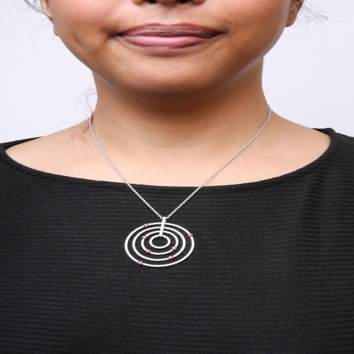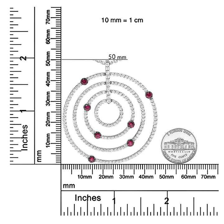 18K White Gold 2 1/6 Cttw Pave Set Diamonds and Red Ruby Openwork Circles 18' Pendant Necklace (G-H Color, SI2-I1 Clarity) - Adjustable up to 16' - 18'