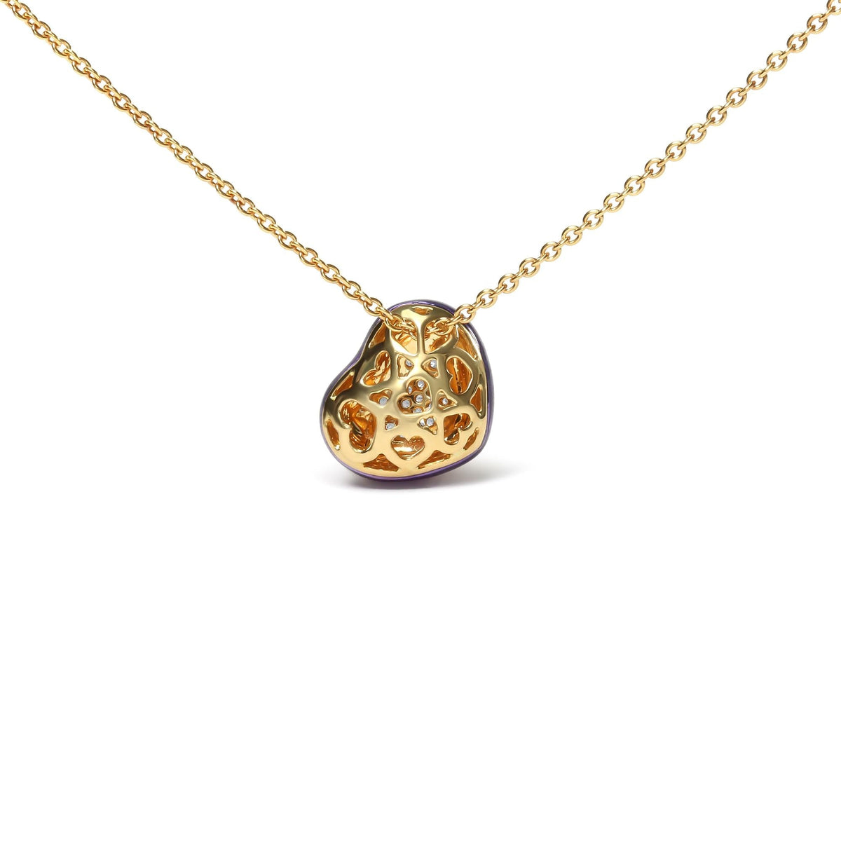 This 18K Yellow Gold Blue Enamel 1/10 Cttw Round Pave Diamonds Heart Shape 18' Pendant Necklace by Haus of Brilliance is a perfect symbol of love and affection. The heart-shaped pendant crafted in 18K yellow gold is adorned with blue enamel and sparkling diamonds, creating a romantic and timeless look.