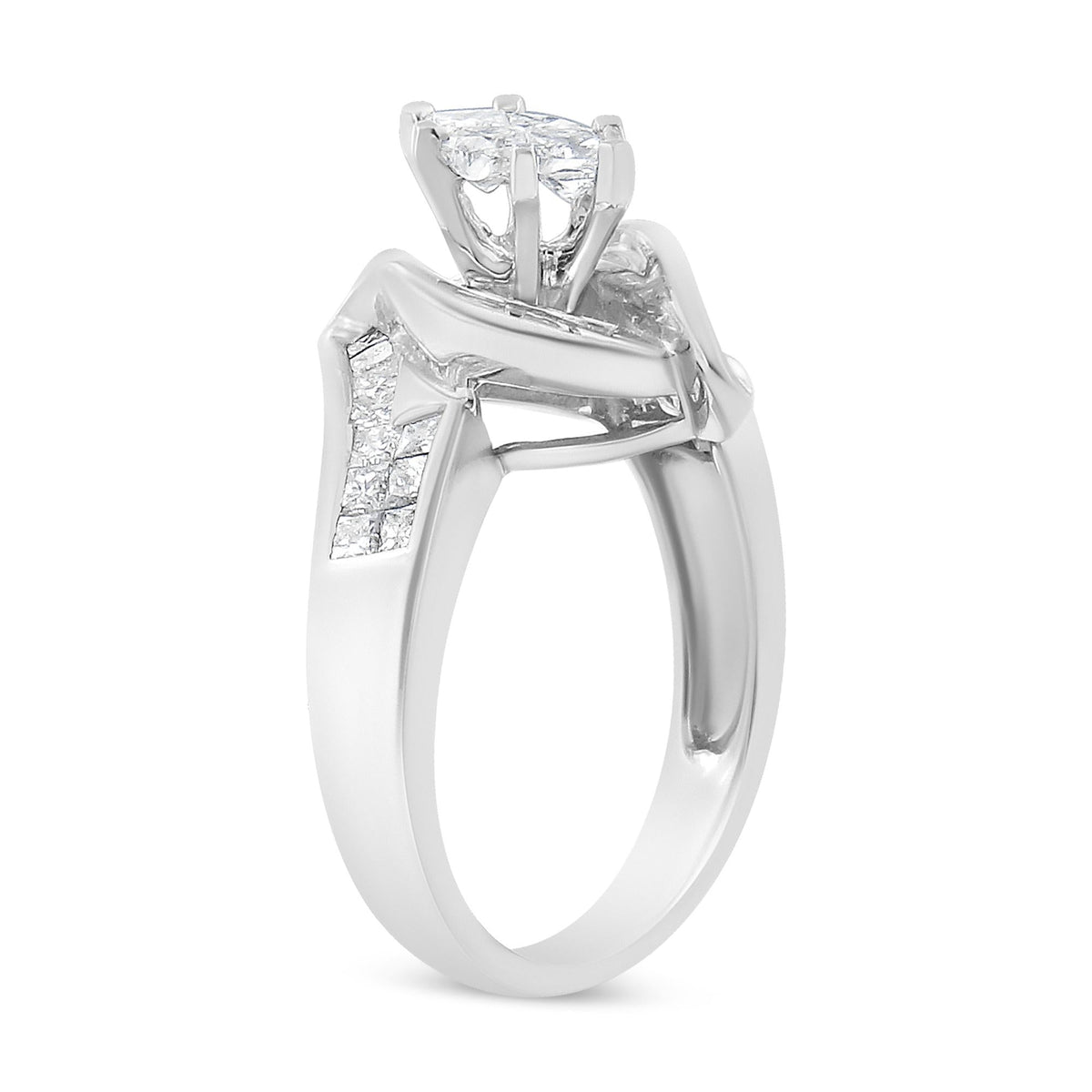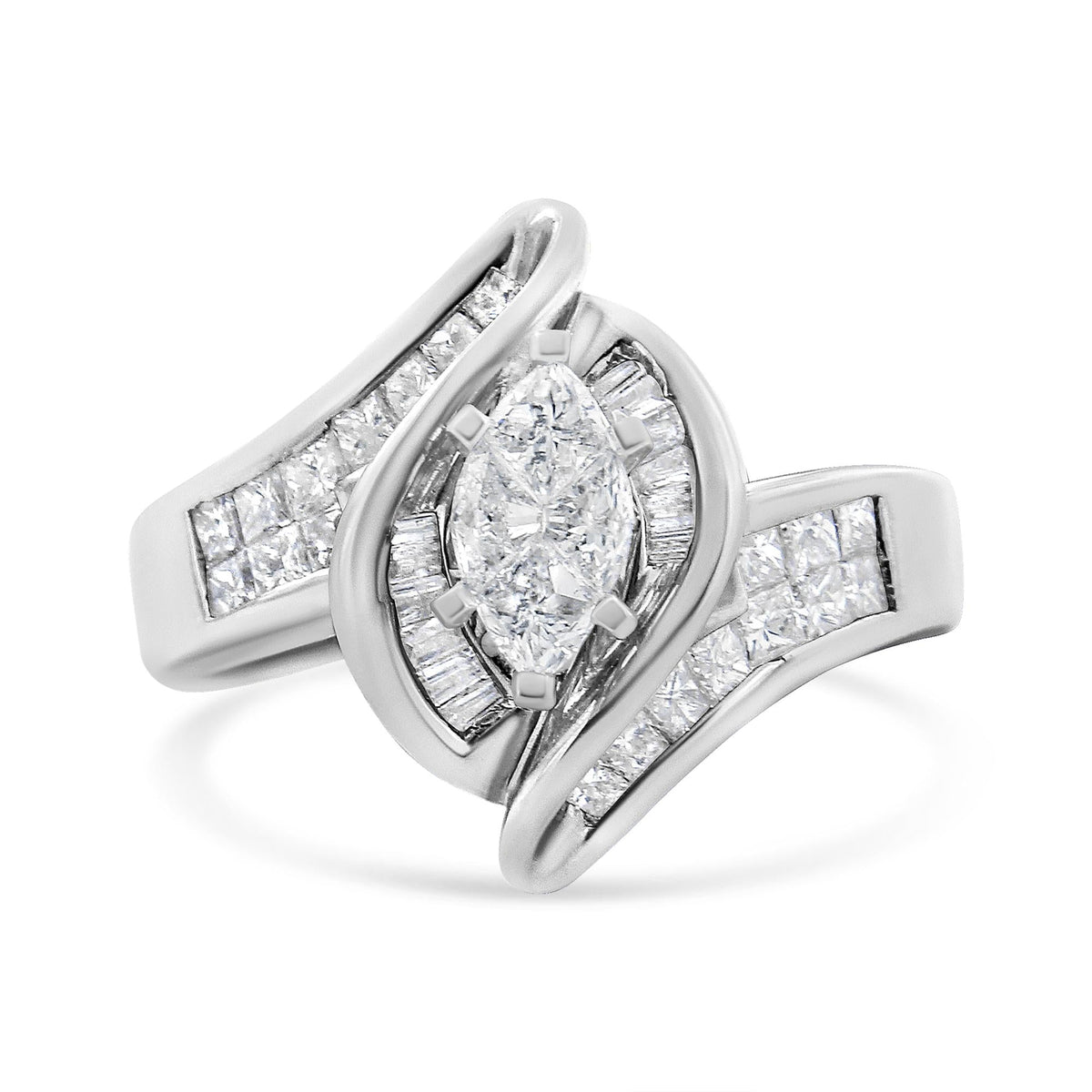 14K White Gold 1 1/4 Cttw Pie, Baguette and Princess cut Diamond Marquise Shape Engagement Cocktail Ring (H-I Color, SI2-I1 Clarity)