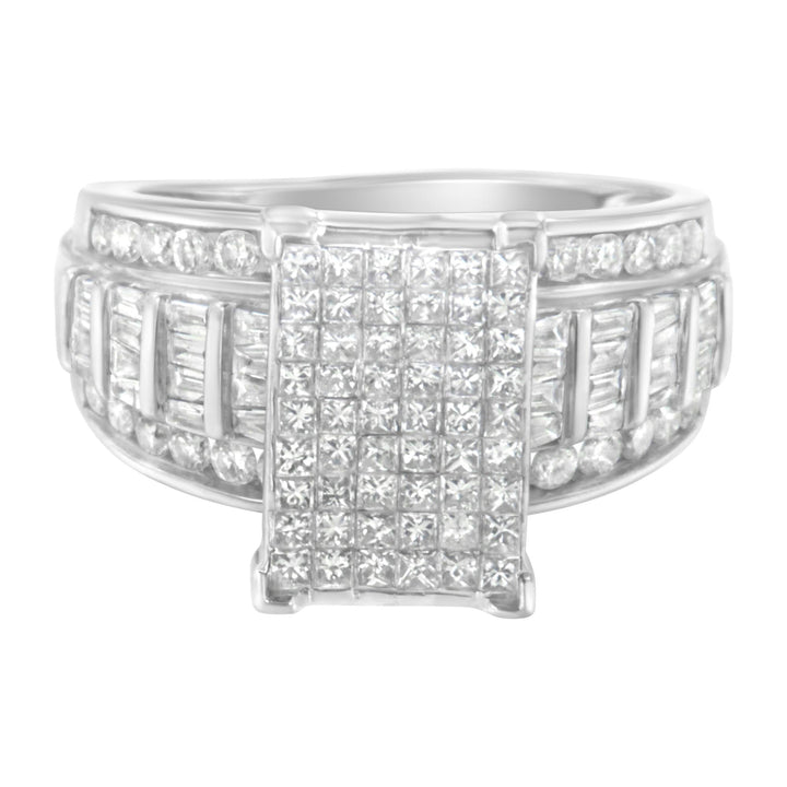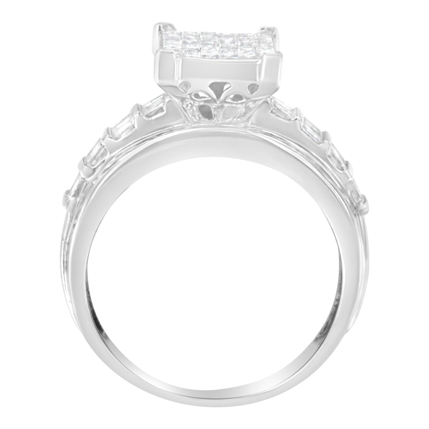 14K White Gold 2.0 Cttw Mixed-Cut Diamond Rectangle Invisible-Set Composite Cluster Ring with Bar- and Channel-Set Band (H-I Color, SI2-I1 Clarity)