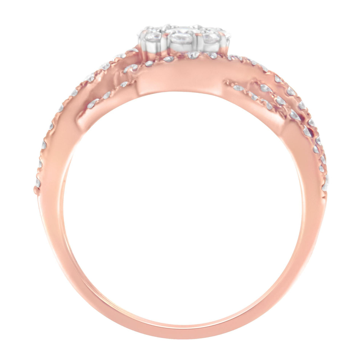 10K Rose Gold 3/4 Cttw Diamond Floral Cluster Head and Twisted Shank Cocktail Ring (H-I Color, SI1-SI2 Clarity)-