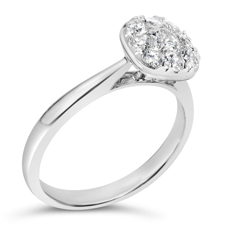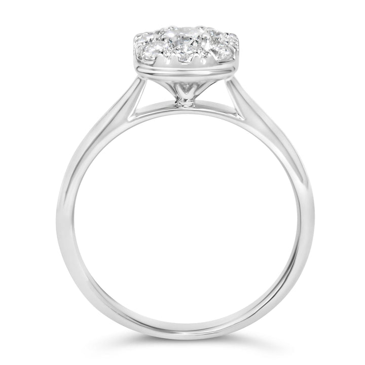 14K White Gold 3/4 Cttw Diamond Halo 9 Stone Bridal Engagement Ring (H-I Color, VS2-SI1 Clarity)