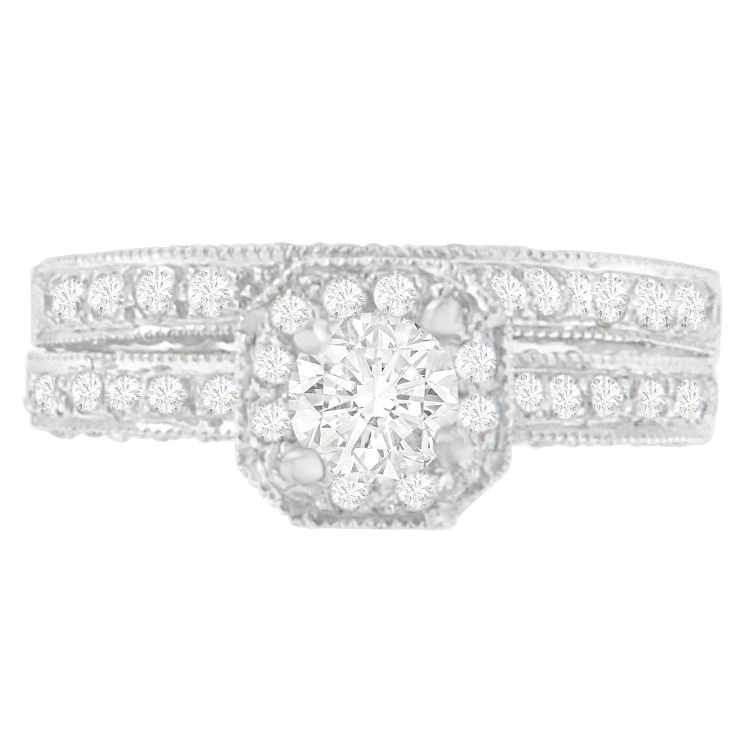 This 14K White Gold 1 CT. TDW Round Cut Diamond Ring by Haus of Brilliance is a chic and timeless piece. The round-cut diamonds are set in a prong setting, arranged to create a clean, classic design that is perfect for any occasion. Crafted in 14K white gold, this ring offers a sophisticated touch of elegance.