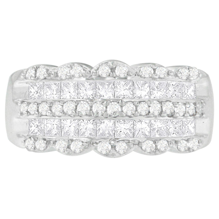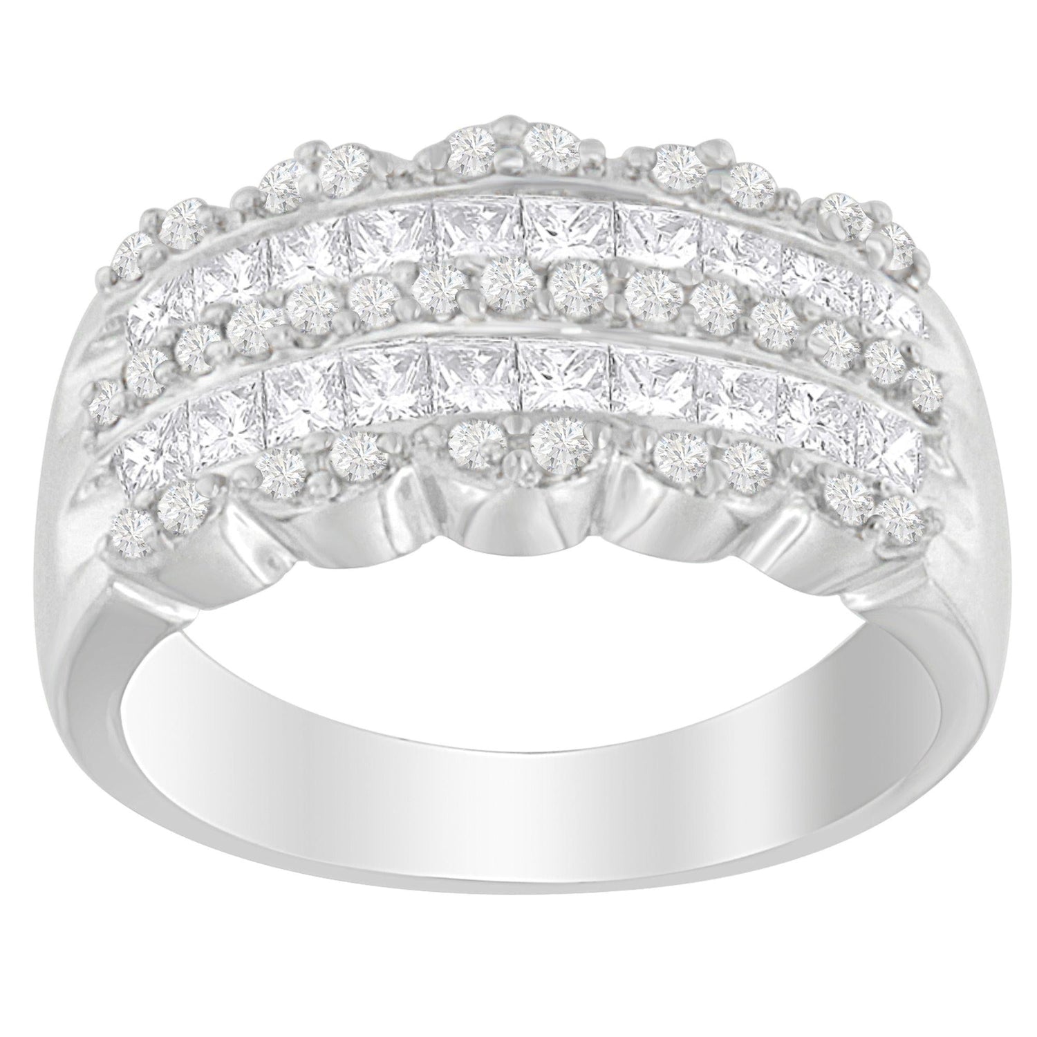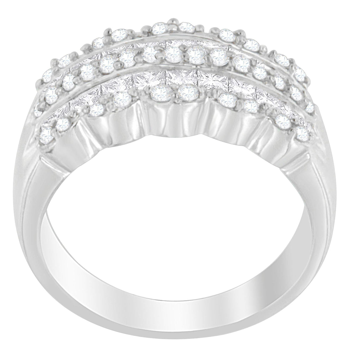 This 14K White Gold 1 1/7ct. TDW Round and Princess-Cut Diamond Ring by Haus of Brilliance is the epitome of modern design. Featuring a captivating blend of round and princess-cut diamonds, this multi-row piece stands out with its luxurious shine and bold presence. Ideal for those who seek a statement piece, this ring promises to last a lifetime.