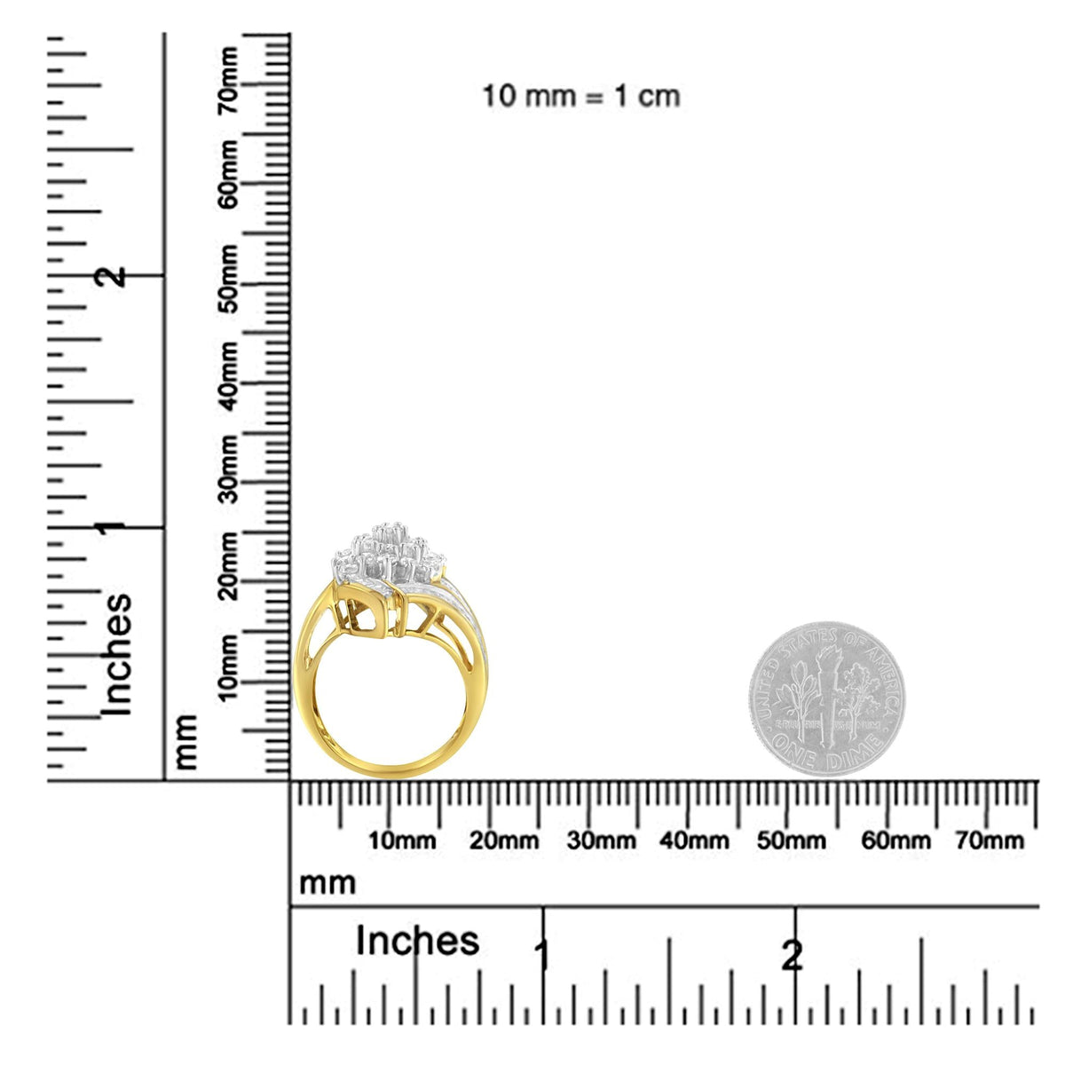 This 10K Yellow Gold Round and Baguette Diamond Swirl Ring by Haus of Brilliance features round and baguette-cut diamonds set in a prong setting, creating a beautiful swirl effect. With a total diamond weight of 2.0 carats, this elegant ring is perfect for fashion, promises, or anniversaries.