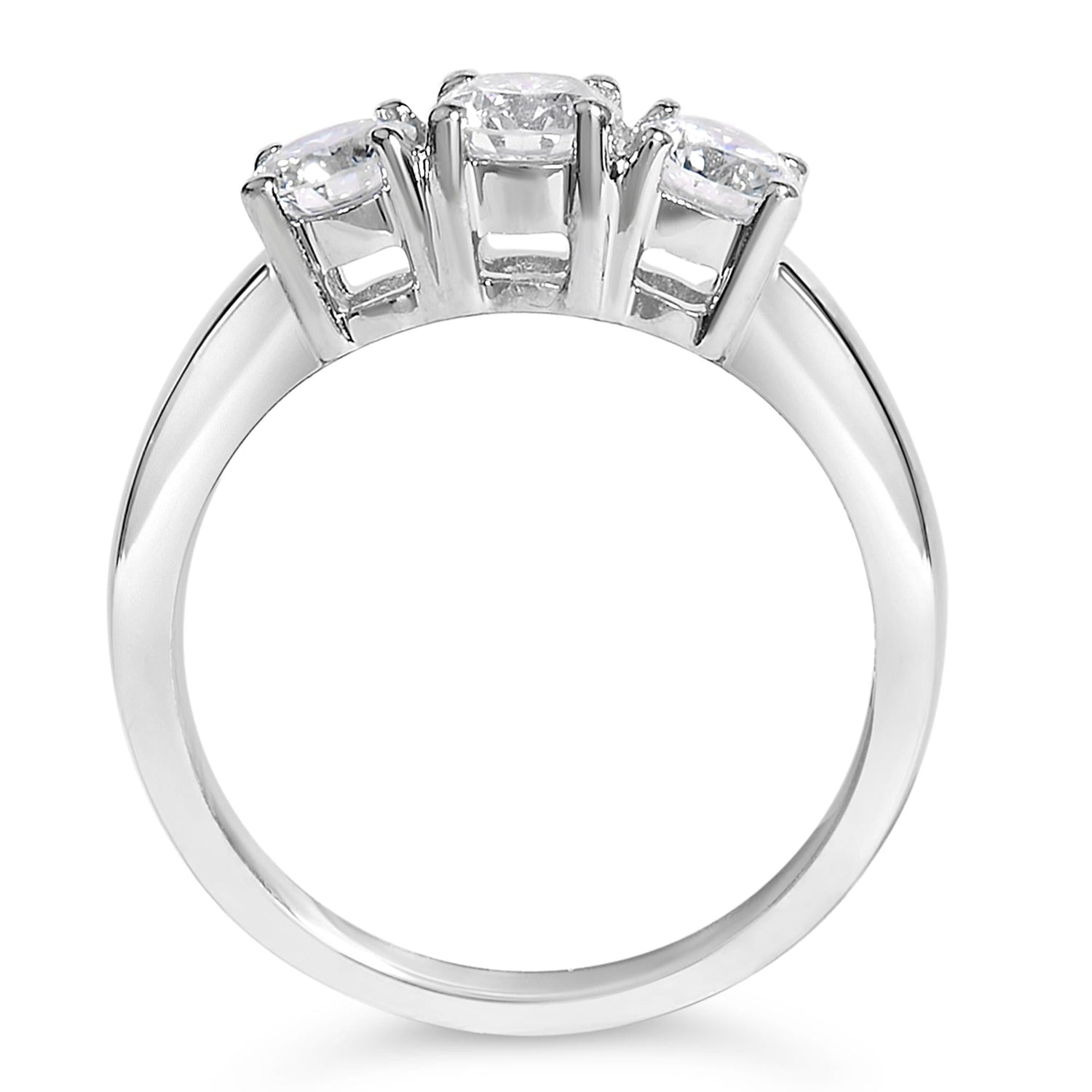 14K White Gold 1.0 Cttw Round Lab Grown Diamond 3 Stone Ring (F-G Color, VS1-VS2 Clarity)
