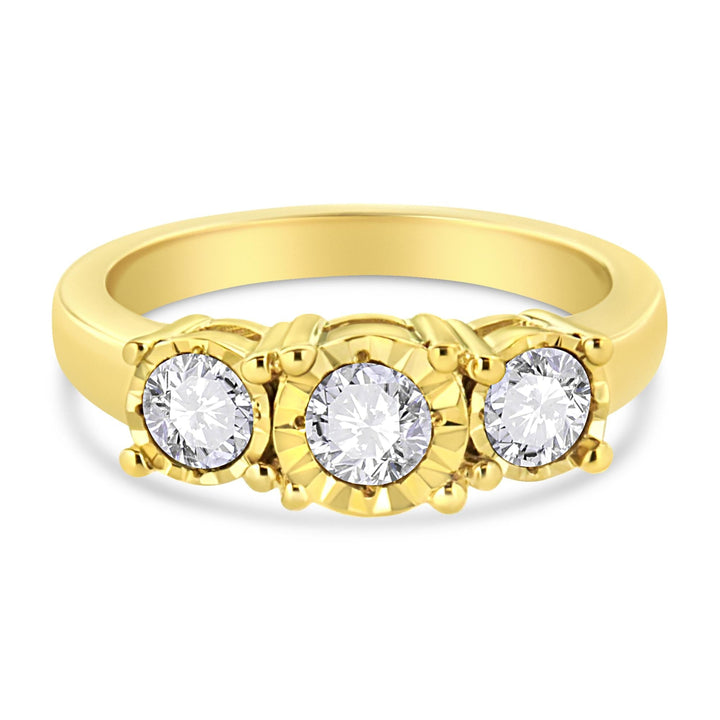 14K Yellow Gold Plated .925 Sterling Silver 1.00 Cttw Miracle-Set Round Diamond Three Stone Engagement Ring (K-L Color, I1-I2 Clarity)
