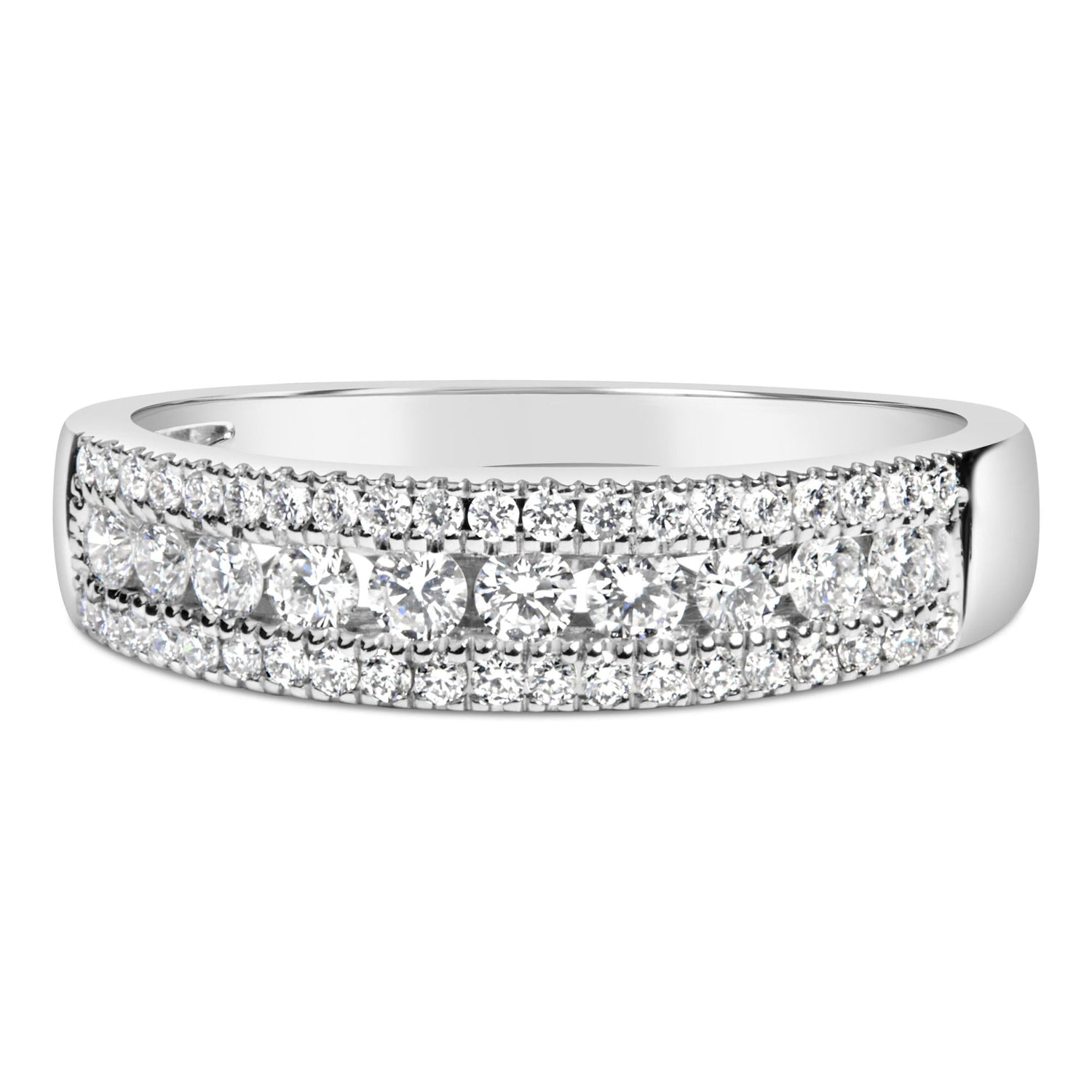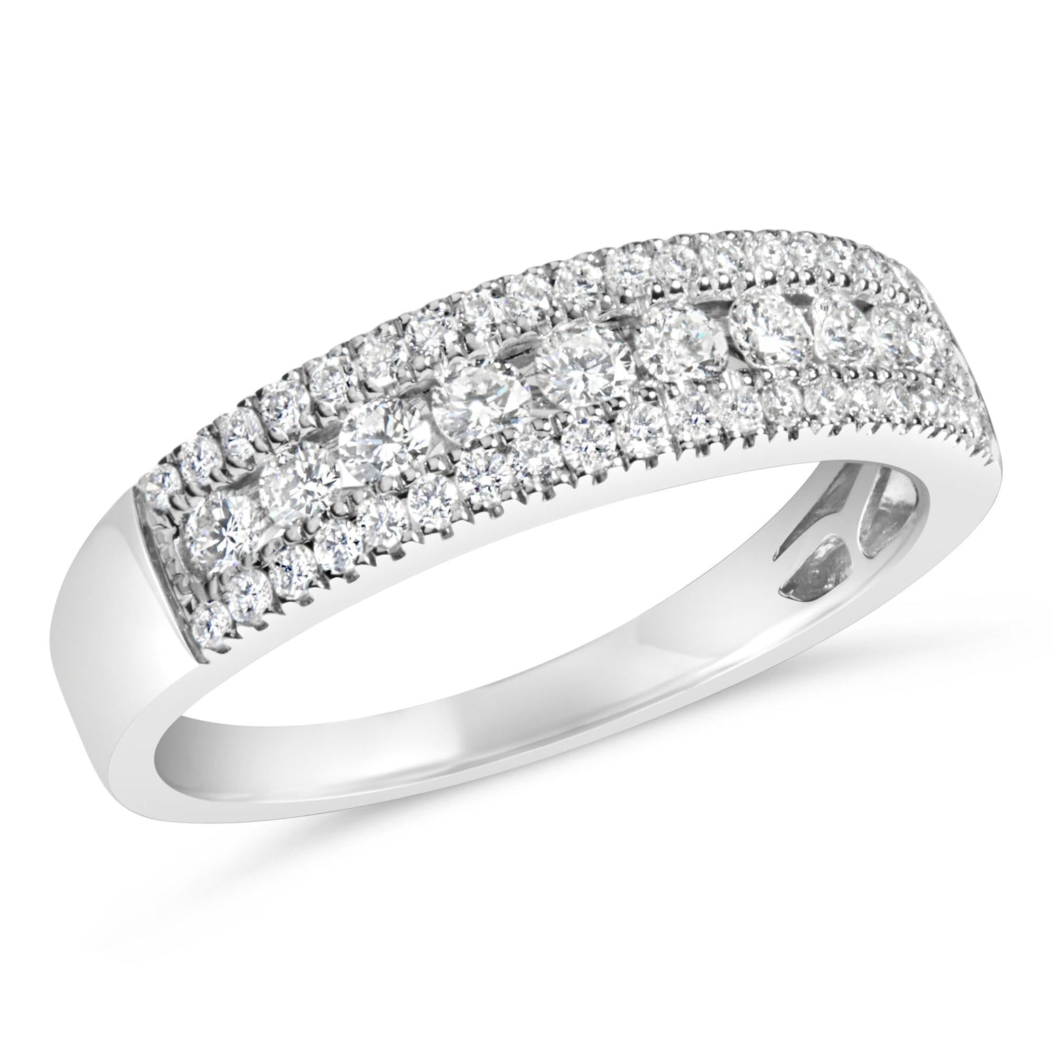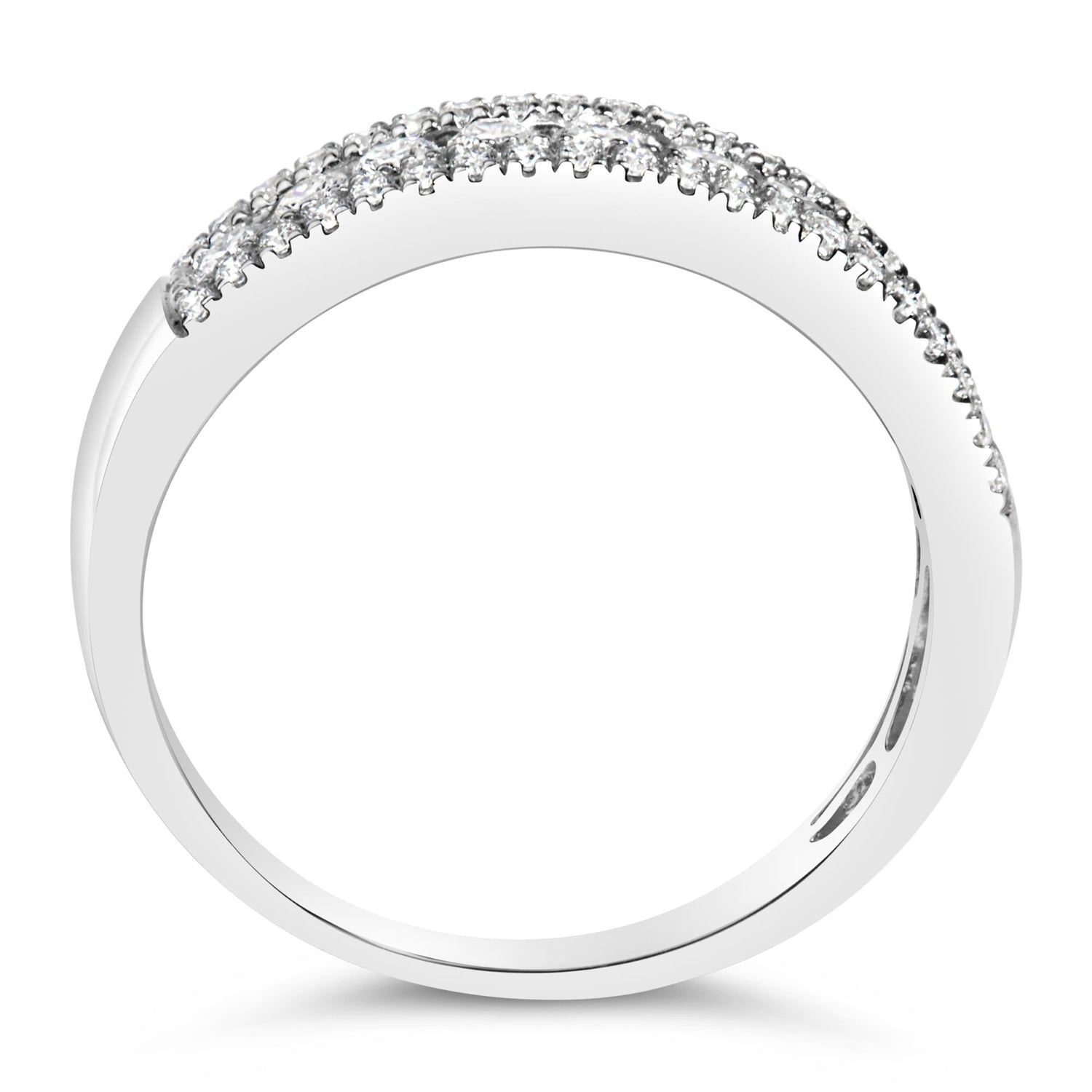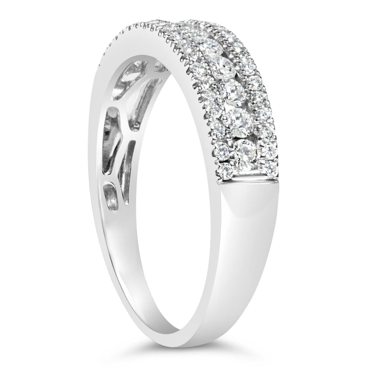 14K White Gold 1/2 Cttw Diamond 3 Row Diamond Band Ring (H-I Color, VS2-SI1 Clarity)