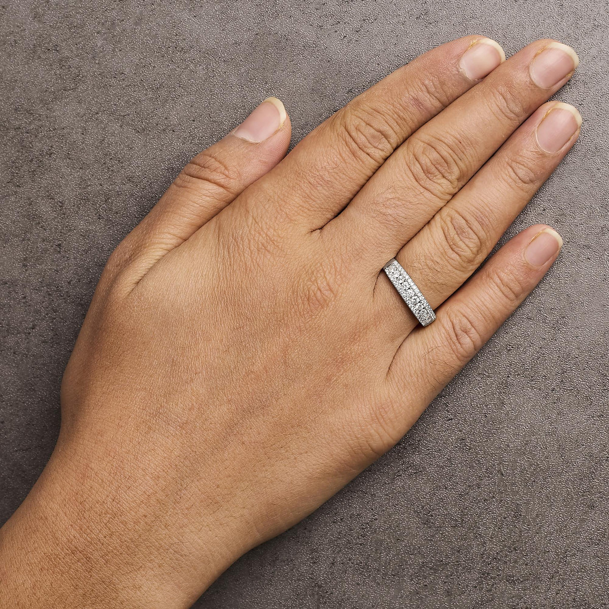 This 14K White Gold 1/2 Cttw Diamond 3 Row Diamond Band Ring by Haus of Brilliance is a luxurious addition to any jewelry collection. The ring features three rows of diamonds, totaling 1/2 carat, set in rhodium-plated 14K white gold. Larger channel-set diamonds are framed by smaller prong-set diamonds, creating a dazzling display of light. The H-I color diamonds and SI2-I1 clarity ensure a brilliant sparkle, making this ring perfect for marking a milestone or as an everyday luxury piece.