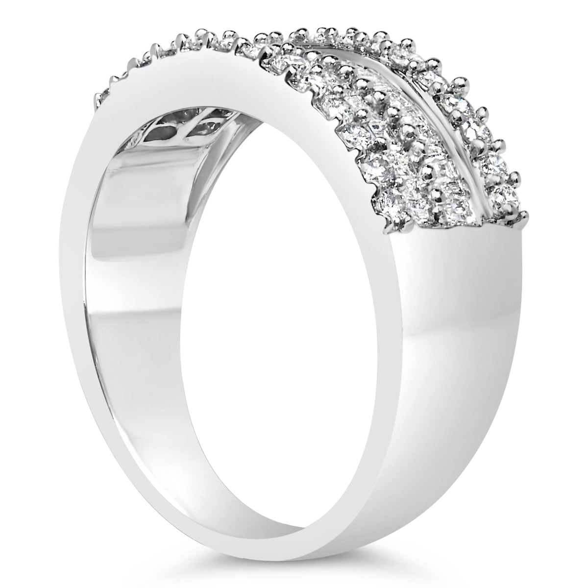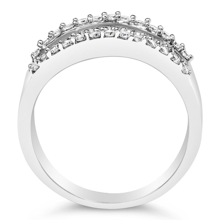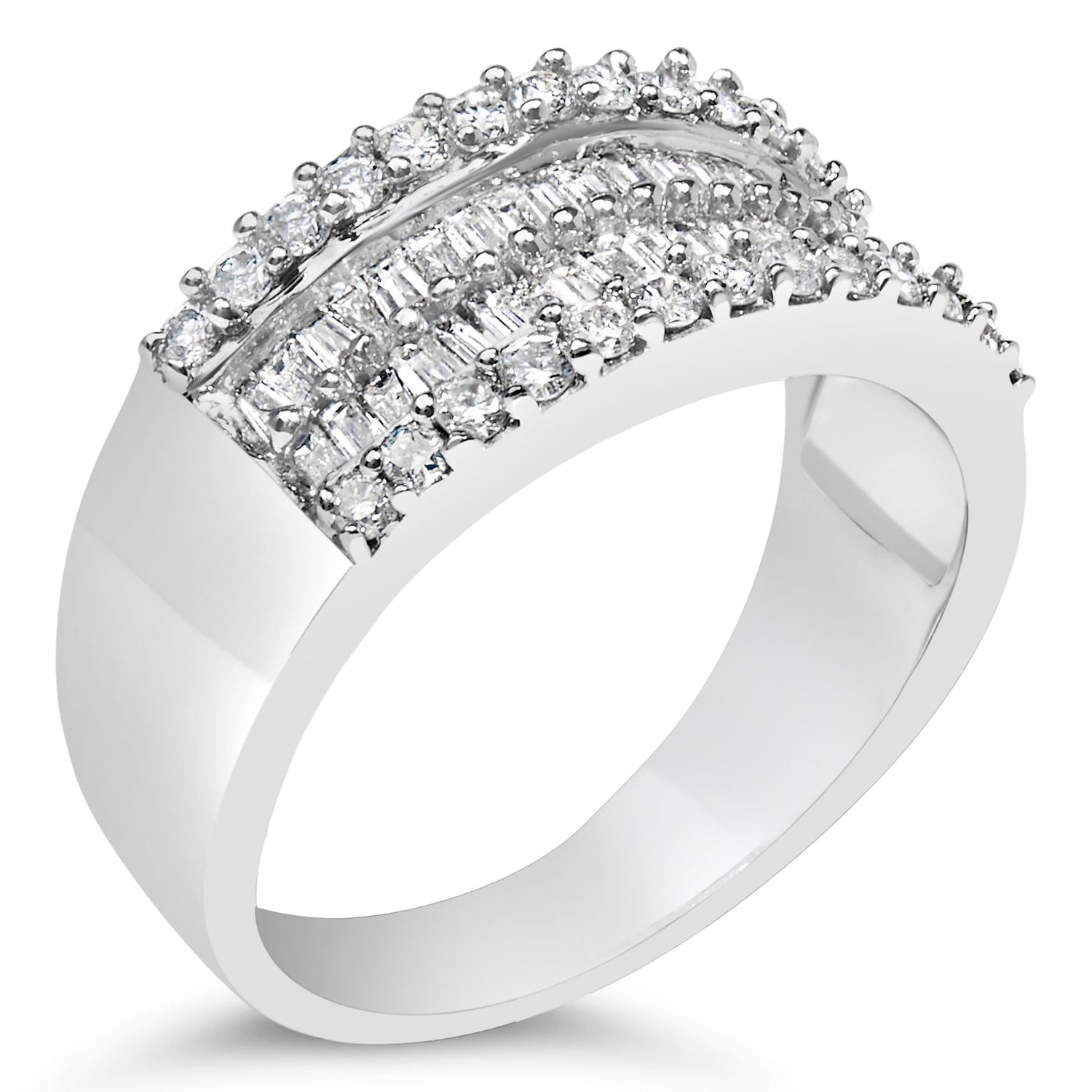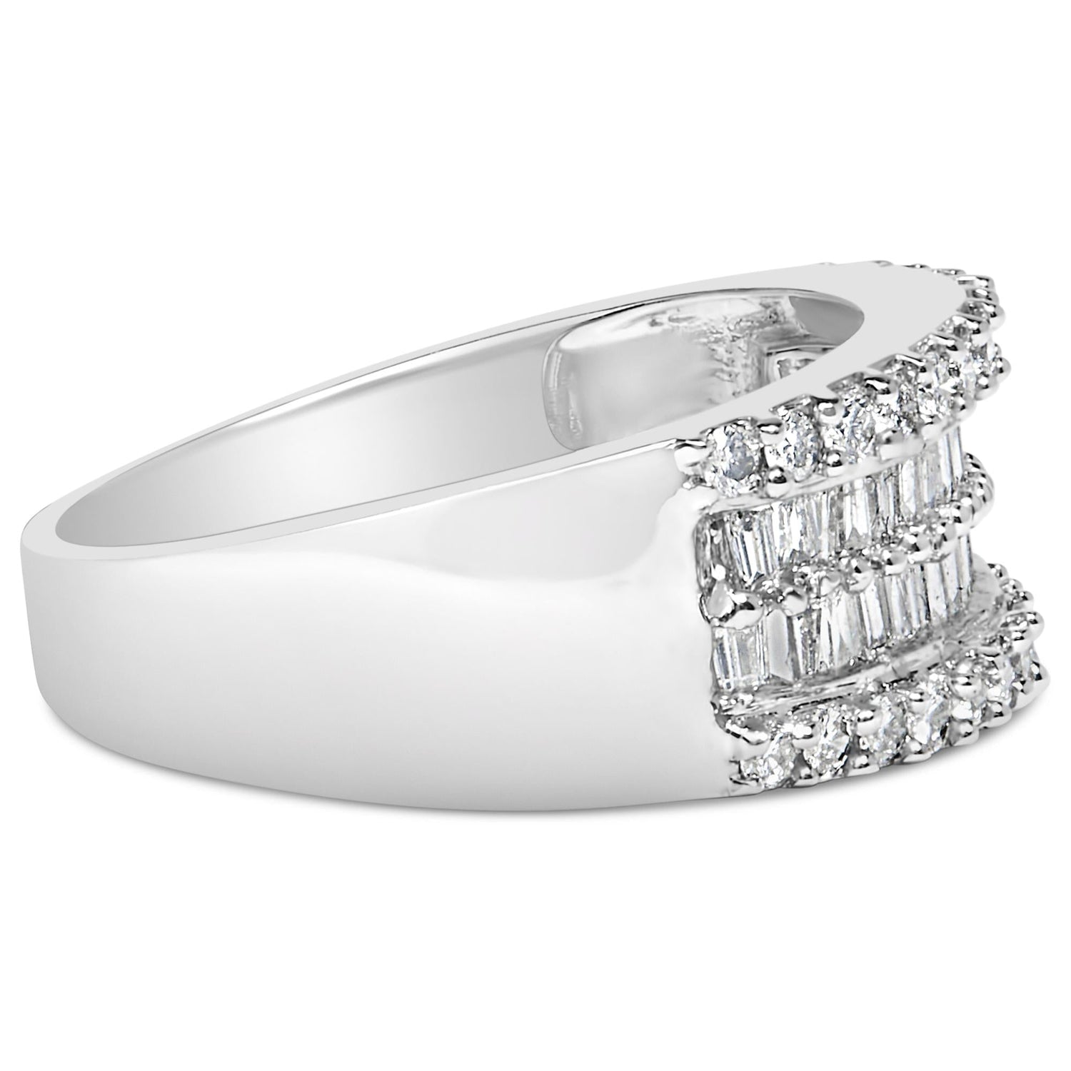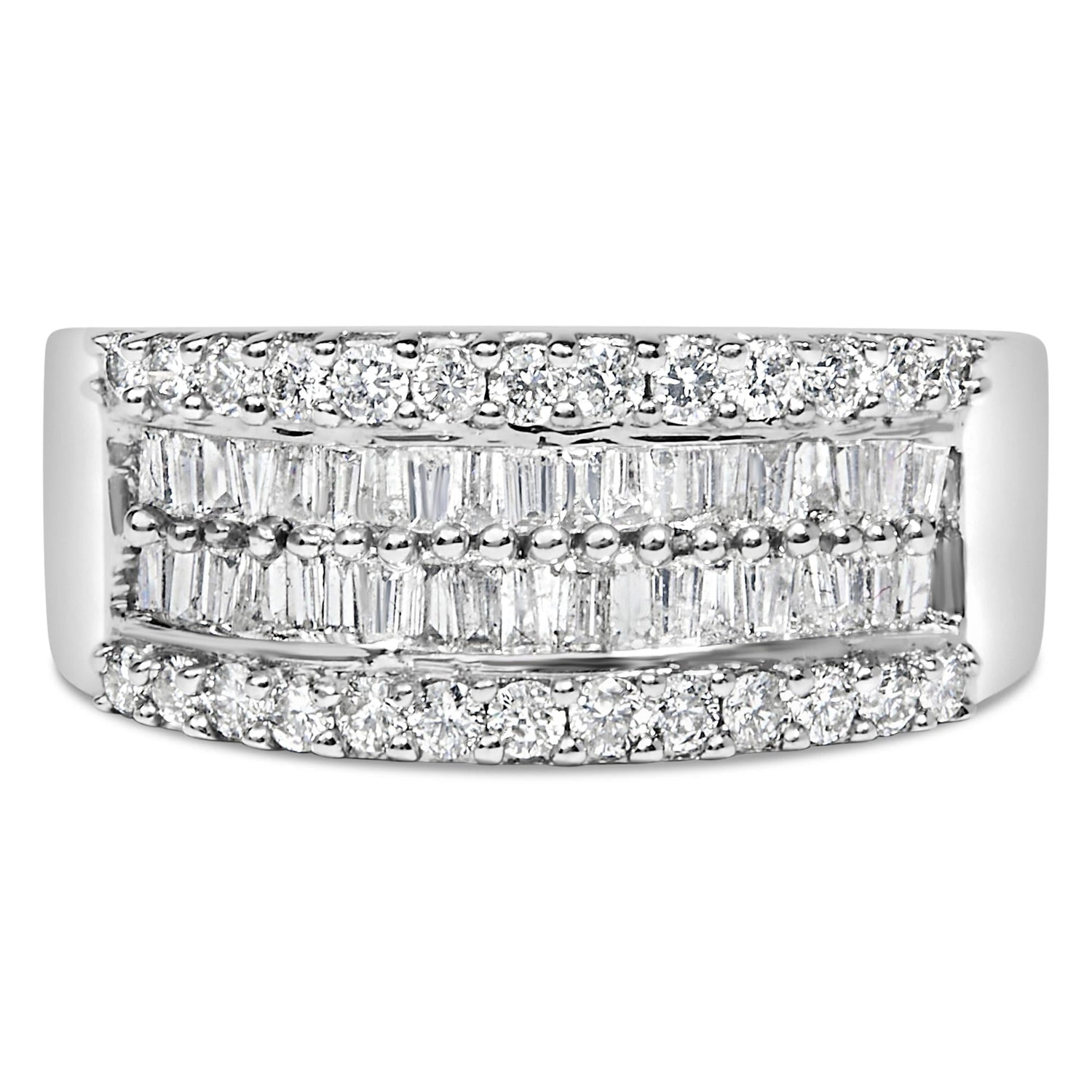 14K White Gold 1.0 Cttw 4 Row Round Baguette Diamond Band Ring (H-I Color, SI1-SI2 Clarity) - Ring Size 7