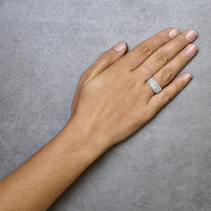 This Four Row Diamond Band Ring by Haus of Brilliance offers architectural beauty in a refined 14K white gold setting. The ring features alternating rows of round and baguette diamonds for visual texture and brilliance. Shared prong-set rounds frame sleek channel-set baguettes, forming a seamless composition that celebrates craftsmanship and light.