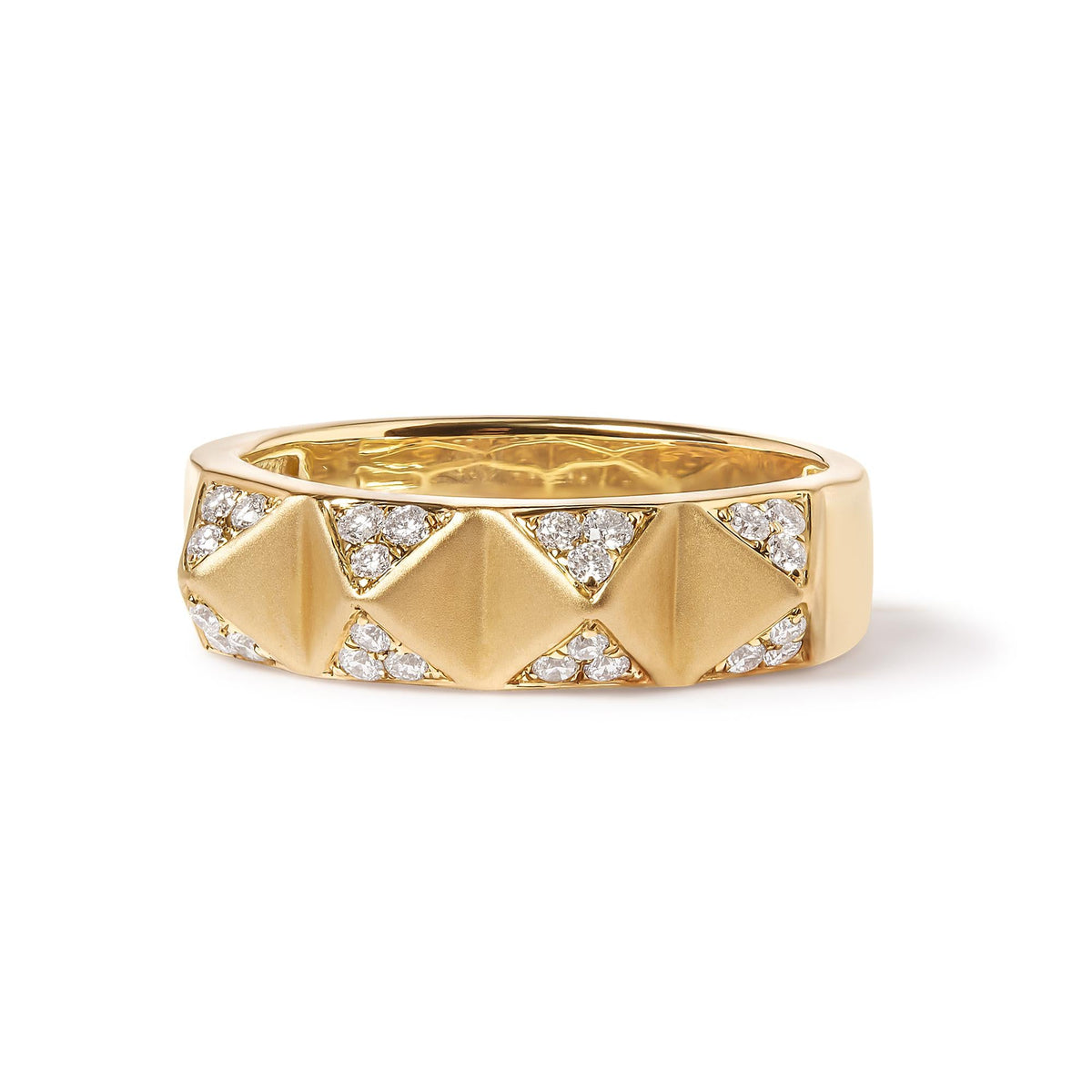 14K Yellow Gold 1/4 Cttw White Diamond Pyramid Band Ring (G-H Color, SI1-SI2 Clarity)- Size 7