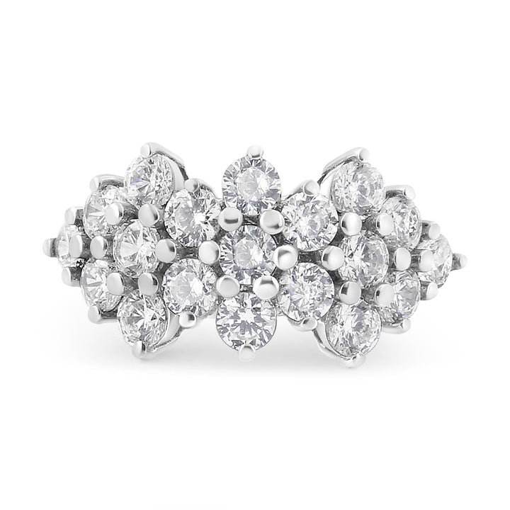 Crafted in 14K white gold with 19 round brilliant-cut natural diamonds totaling 4.0 cttw (I-J color, I1-I2 clarity). Multi-row scatter design with 3mm band.