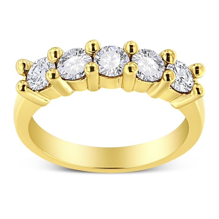 14K Yellow Gold Plated .925 Sterling Silver 1.0 Cttw Shared Prong-set Round Diamond 5 Stone Band Ring (J-K Color, I1-I2 Clarity)