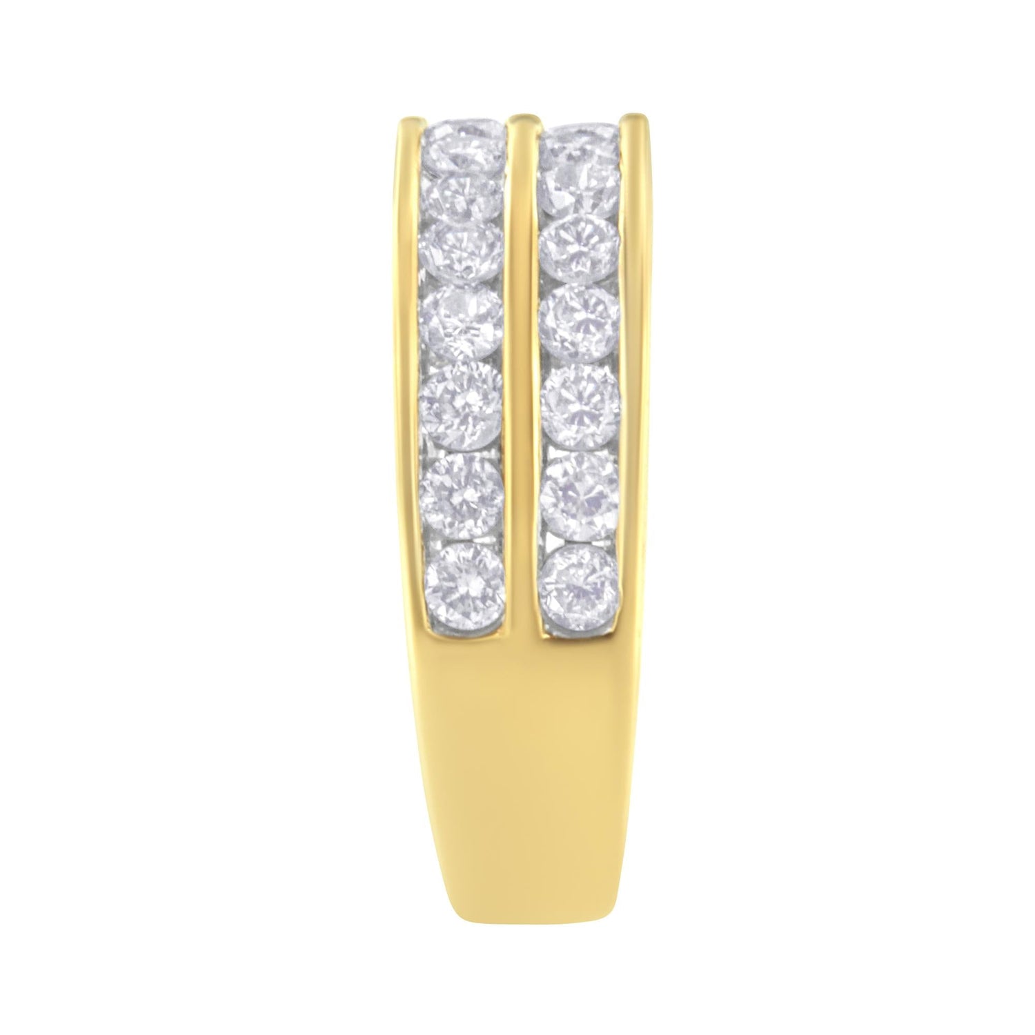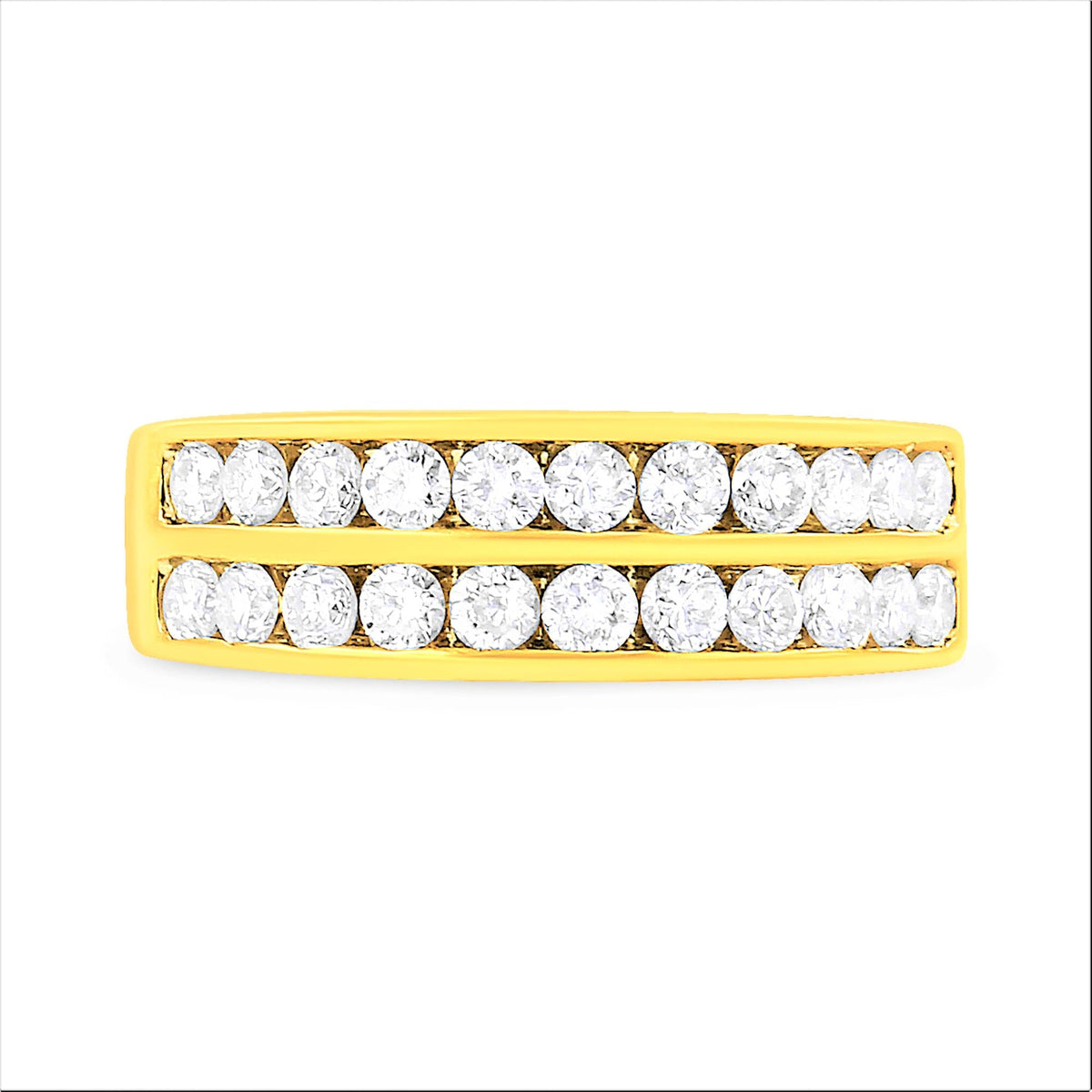 This 10K Yellow Gold Two-Row Diamond Band Ring by Haus of Brilliance features two rows of glittering round-cut diamonds, channel-set in warm 10K yellow gold. With 22 sparkling diamonds and a total weight of 1 carat, this modern design is the perfect diamond ring for the one you love.