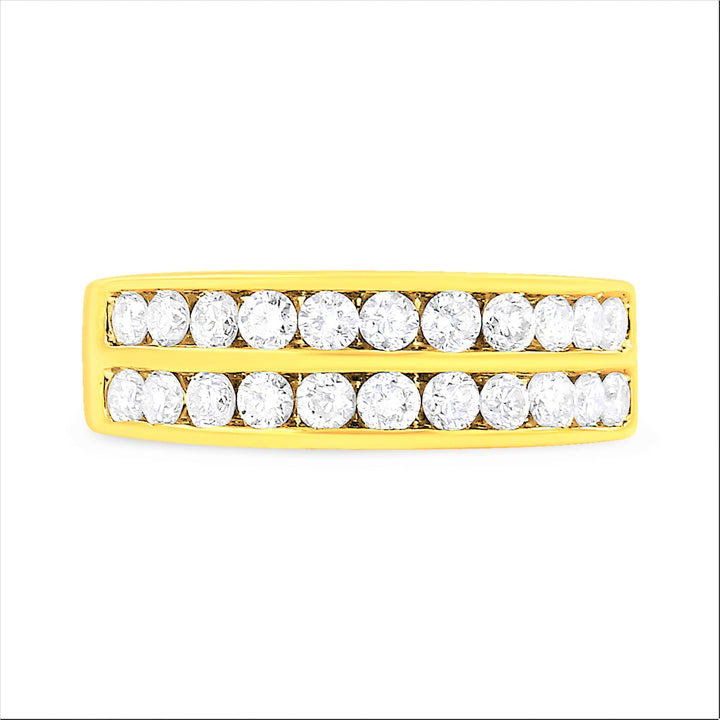 10K Yellow Gold Two-Row Diamond Band Ring (1 Cttw, J-K Color, I1-I2 Clarity)