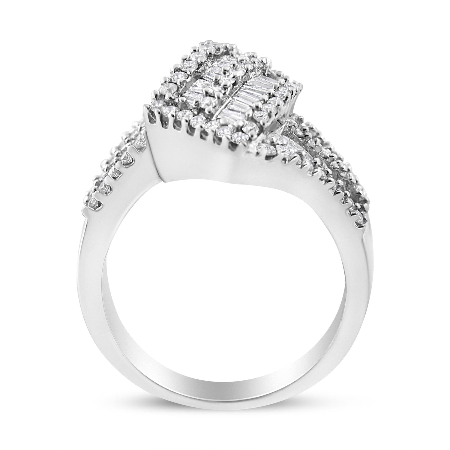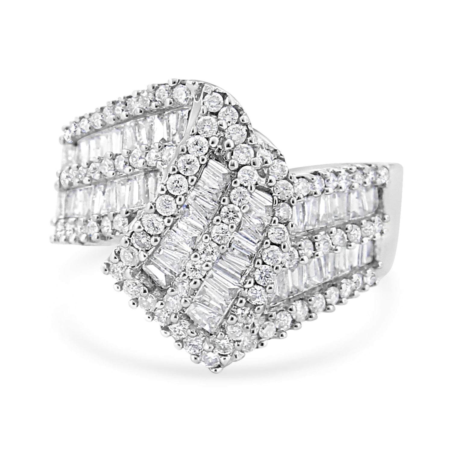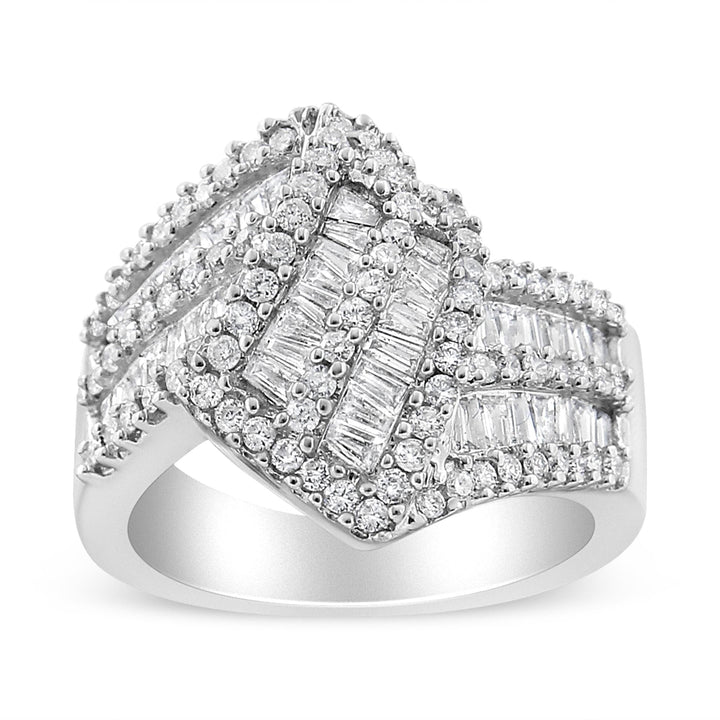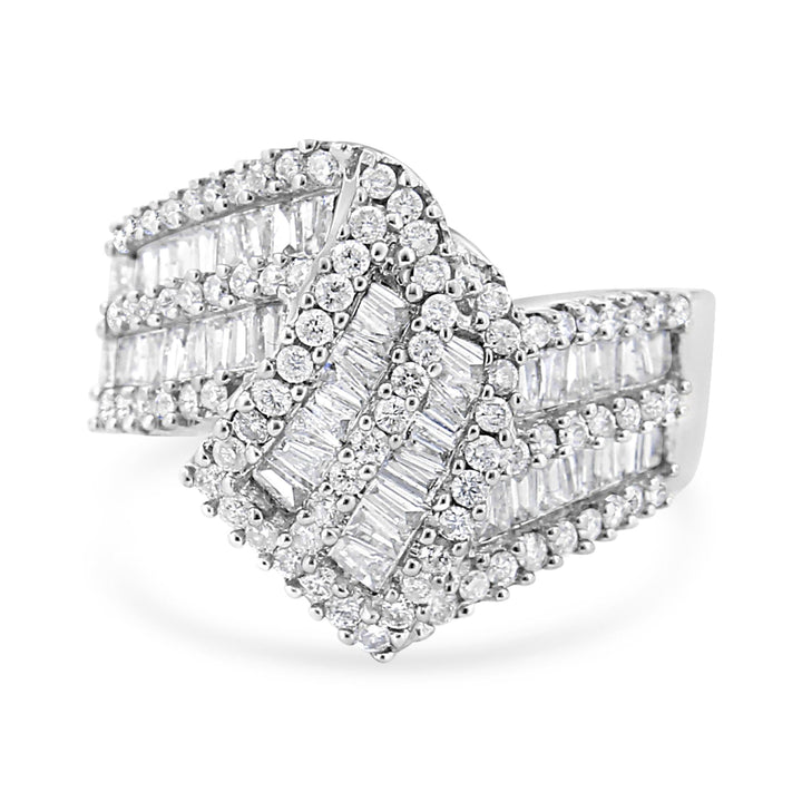 14K White Gold 1-1/2 Cttw Round and Baguette Diamond Bypass Cocktail Ring Band (H-I Color, SI1-SI2 Clarity)