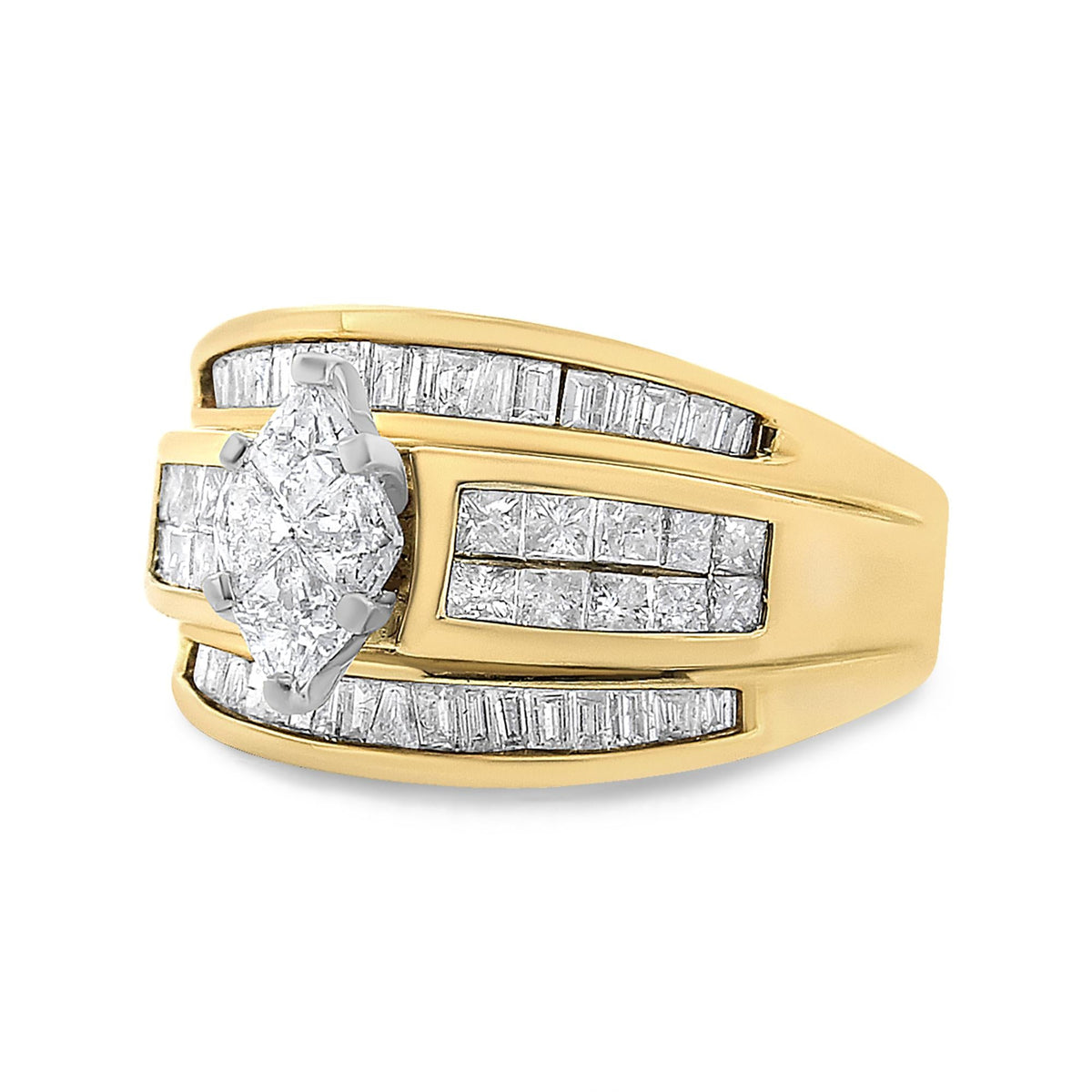 14K Yellow Gold 1 1/2 Cttw Pie, Princess and Baguette-cut Diamond Marquise Shaped Engagement Cocktail Ring Band (H-I Color, I1-I2 Clarity)