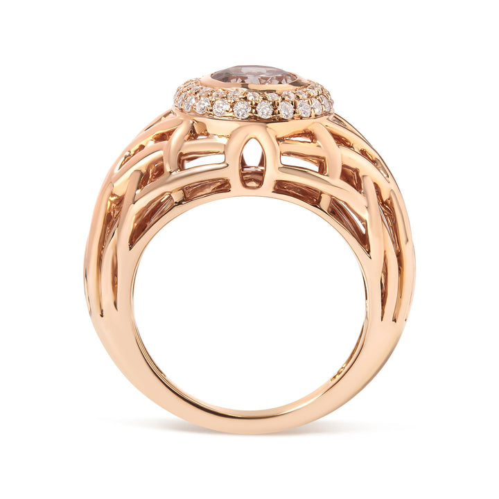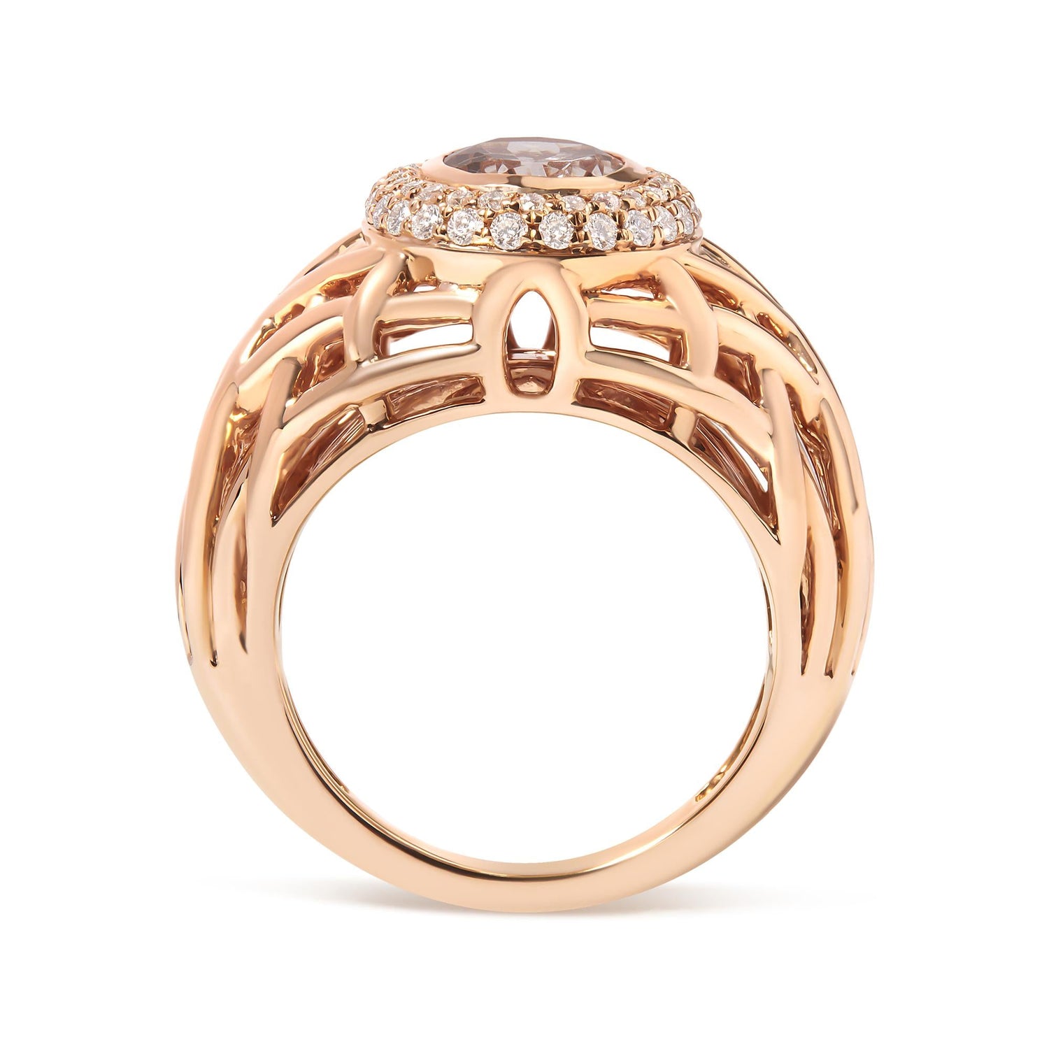 14K Rose Gold Oval Cut Light Pink Morganite and 3/8 Cttw Diamonds Halo and Basket Weave Cocktail Ring (G-H Color, SI1-SI2 Clarity) - Size 7