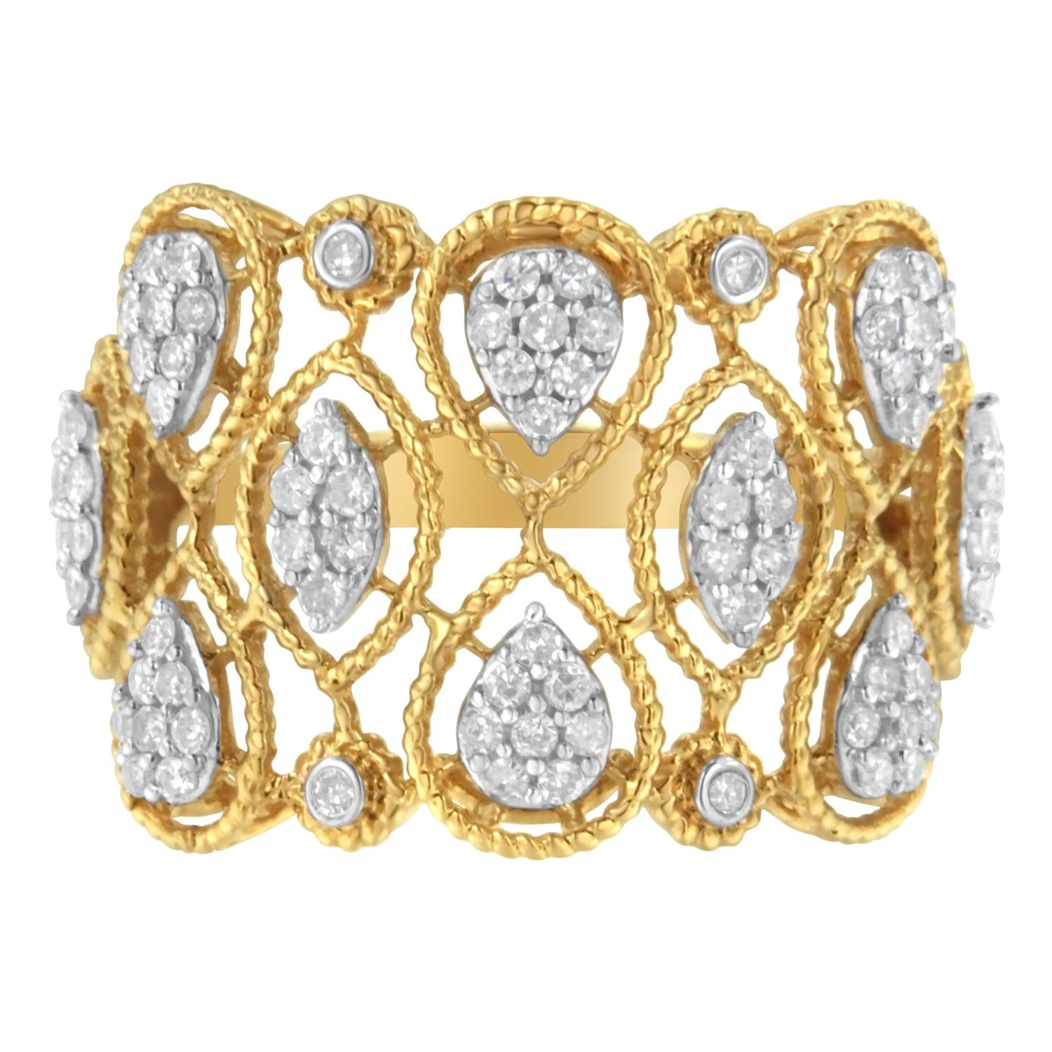 This 14K Yellow Gold Diamond Art Deco Ring by Haus of Brilliance combines the elegance of Art Deco with the timeless beauty of diamonds. The floral-inspired design with pear clusters and bezel accents creates a look that is both vintage and modern. The warm yellow gold setting enhances the brilliance of the diamonds, making this ring a perfect accessory for any fashion-forward individual.