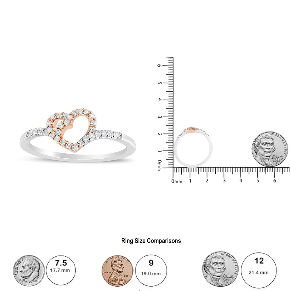 14K Rose Gold Plated and White .925 Sterling Silver 1/5 Cttw Round-Cut Diamond Open Heart Promise Ring (I-J Color, I2-I3 Clarity)