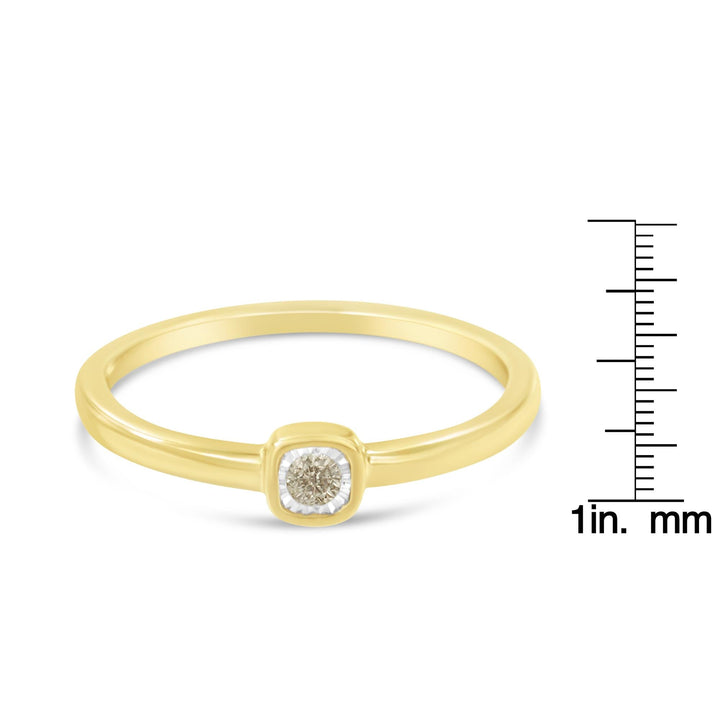 This 14K Yellow Gold Plated .925 Sterling Silver 1/20 Carat Diamond Square Cushion-Shaped Miracle Set Petite Fashion Promise Ring by Haus of Brilliance features a round diamond miracle set in a 14K yellow gold-plated setting. This delicate ring, with a diamond weight of .05 carats, is the perfect gift for someone special.