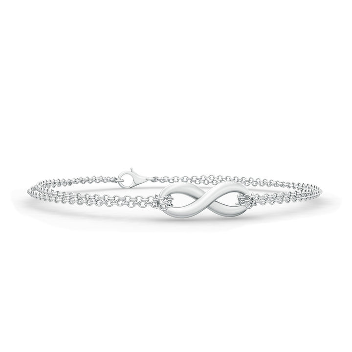 This Infinity Knot Chain Bracelet by Angara in 18K white gold brings refined symbolism to a sleek silhouette. The polished infinity motif represents unending connection, beautifully linked by delicate chains and secured with a lobster clasp. An elegant essential for everyday meaning.