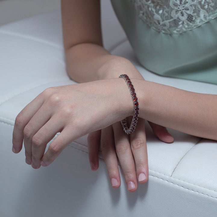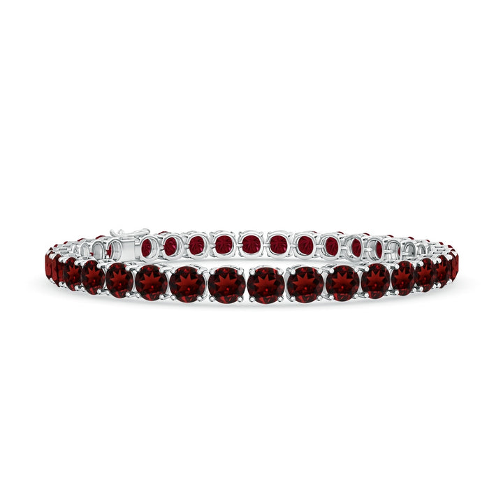 This Classic Garnet Linear Tennis Bracelet by Angara is a timeless piece imbued with passion and poise. The vivid red garnets—each precisely prong-set—form an uninterrupted stream of fiery elegance. Designed to lie smoothly against the wrist and secured with a discreet catch clasp, this bracelet exudes refined drama. A perfect choice for marking milestones or lending a bold finish to everyday style.