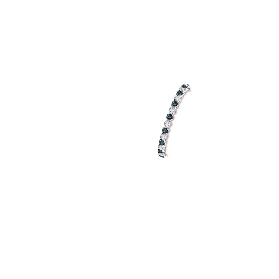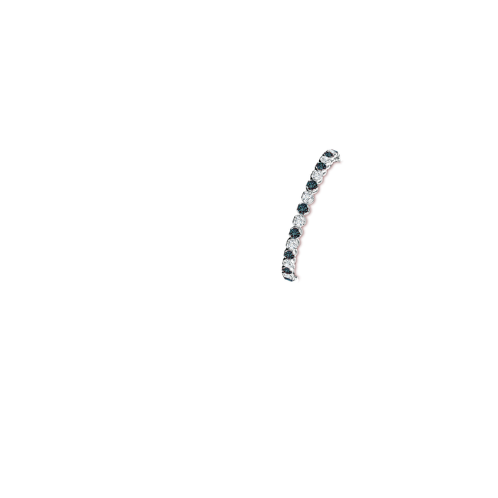 Handcrafted in 14K white gold with 17 round lab-grown alexandrites measuring 4 mm each, totaling approximately 5.78 carats. Paired with 17 round lab-grown diamonds totaling 3.91 carats, F-G color, VS clarity. Prong setting.