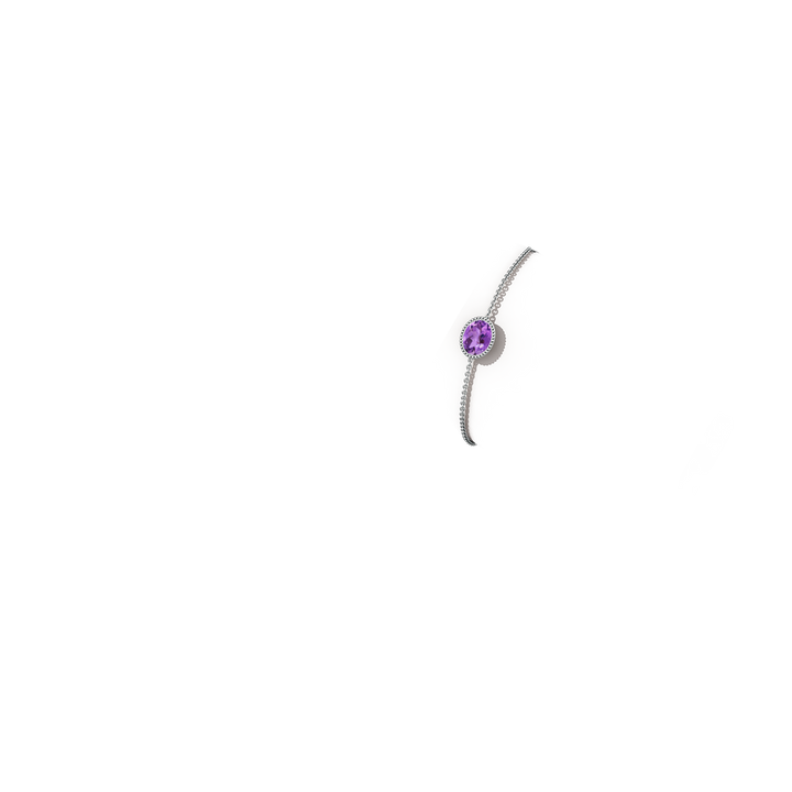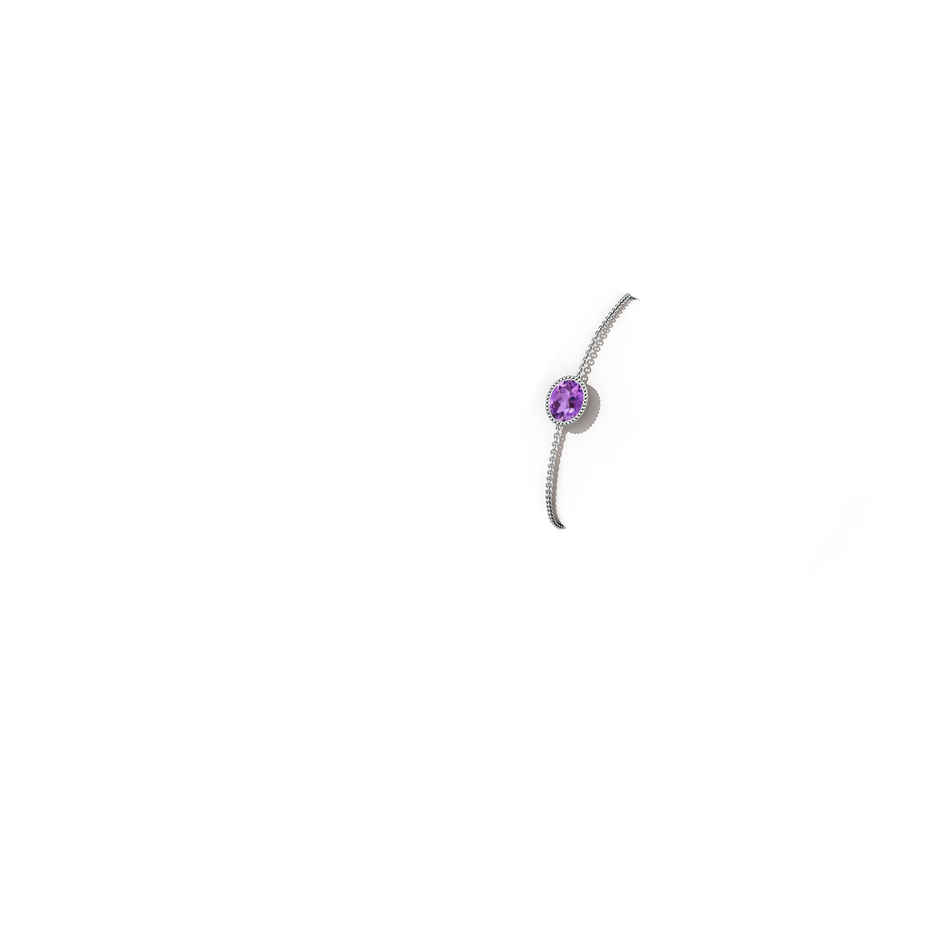 This Bezel-Set Oval Amethyst Solitaire Chain Bracelet by Angara is a study in understated luxury. A single richly hued amethyst rests in a delicate bezel setting, framed with intricate beaded detailing. Its royal purple tone speaks of spiritual strength and calm, making this piece a meaningful addition to any collection.