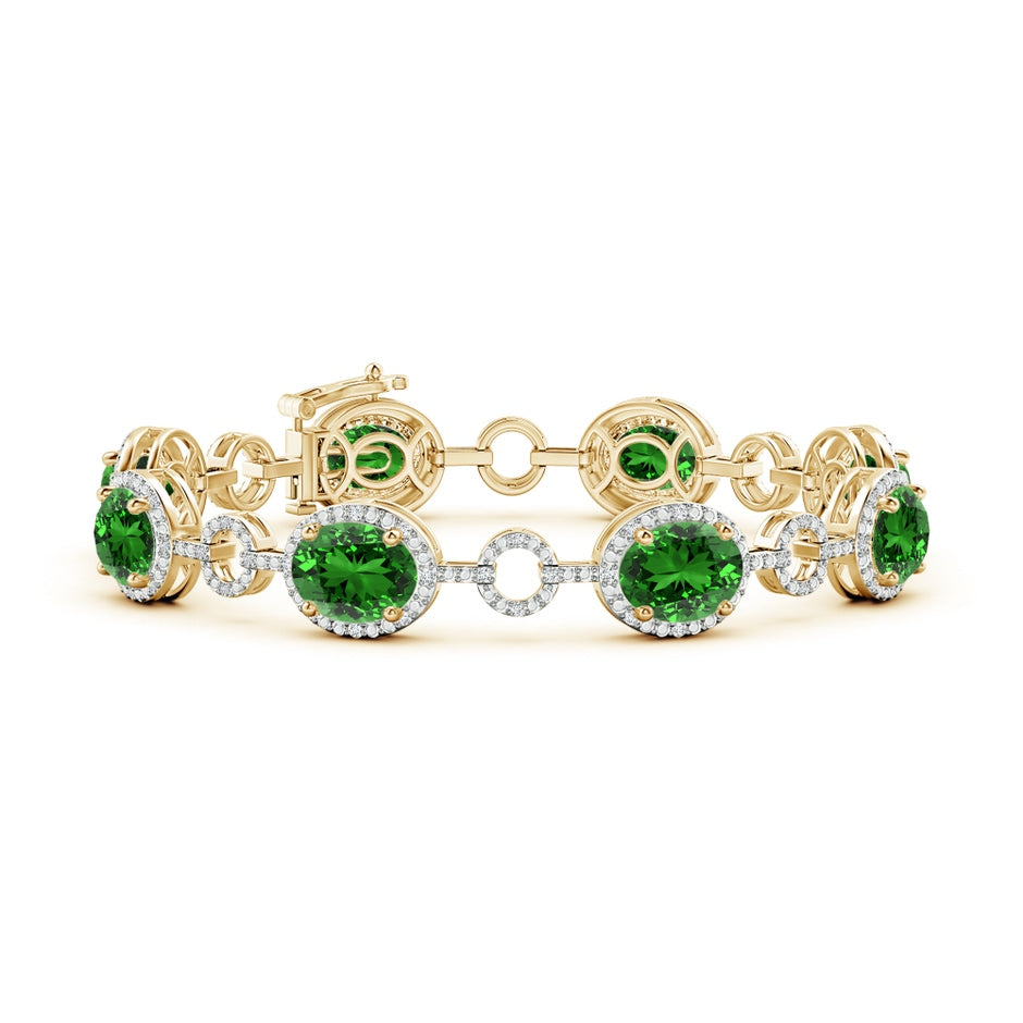 Lab-Grown Oval Emerald Halo Open Circle Link Bracelet