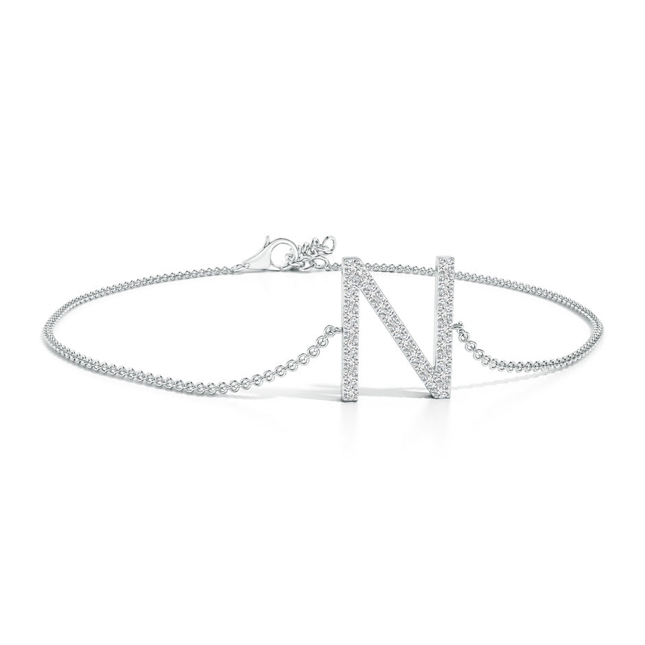 This Prong-Set Diamond Capital 'N' Initial Bracelet by Angara combines elegant craftsmanship and personal expression. The “N” initial is set with 27 round diamonds totaling approximately 0.20 carats on 14K white gold, perfect for a sparkling everyday accent.