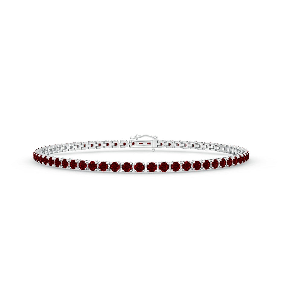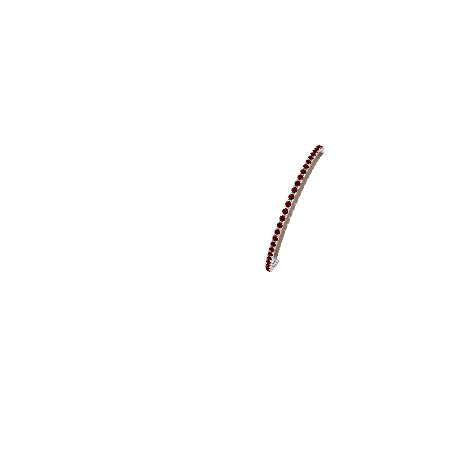 Crafted in 14k white gold with 70 prong-set round rubies (2.2mm each) totaling 4.20 carats. Rubies are AAAA grade, heated. Catch clasp closure.