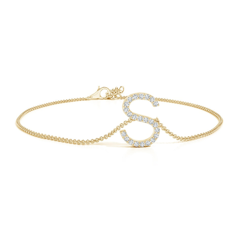 This Prong-Set Diamond Capital 'S' Initial Bracelet by Angara is a sophisticated expression of individuality. Crafted in 14k yellow gold, the bracelet features 23 prong-set round diamonds totaling 0.20 carats on the capital 'S' initial, sparkling with refined elegance.