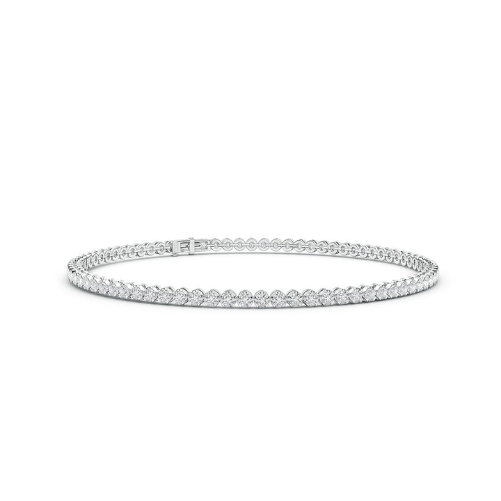 This Classic Round Diamond Tennis Bracelet by Angara delivers effortless sophistication in 14k white gold. Featuring a continuous line of prong-set round brilliant diamonds, the bracelet’s classic design is elevated by its unique prong setting that enhances sparkle and security. This versatile piece is ideal for both everyday luxury and special occasions, offering timeless grace with a distinctive edge.