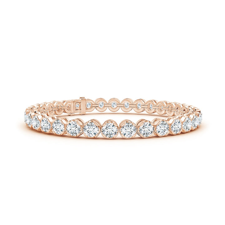 This Lab-Grown Classic Round Diamond Tennis Bracelet by Angara offers bold brilliance and graceful design. Featuring 34 prong-set round lab-grown diamonds set in 14k rose gold, this bracelet delivers an impressive total carat weight of 7.82 carats, combining luxury with wearability in a timeless piece.