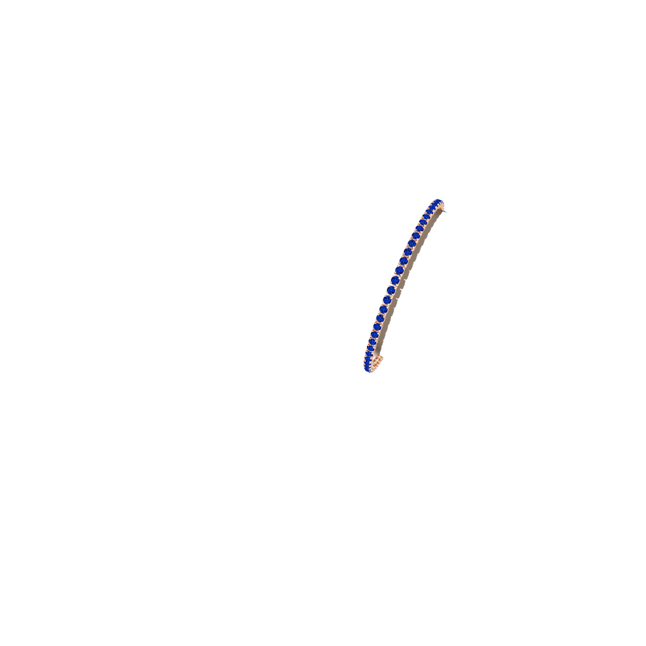 Crafted in 14k rose gold featuring 70 prong-set round blue sapphires approximately 2.2mm each, totaling 4.20 carats. Sapphires are AAAA quality with heated enhancement. Secured with a catch clasp.